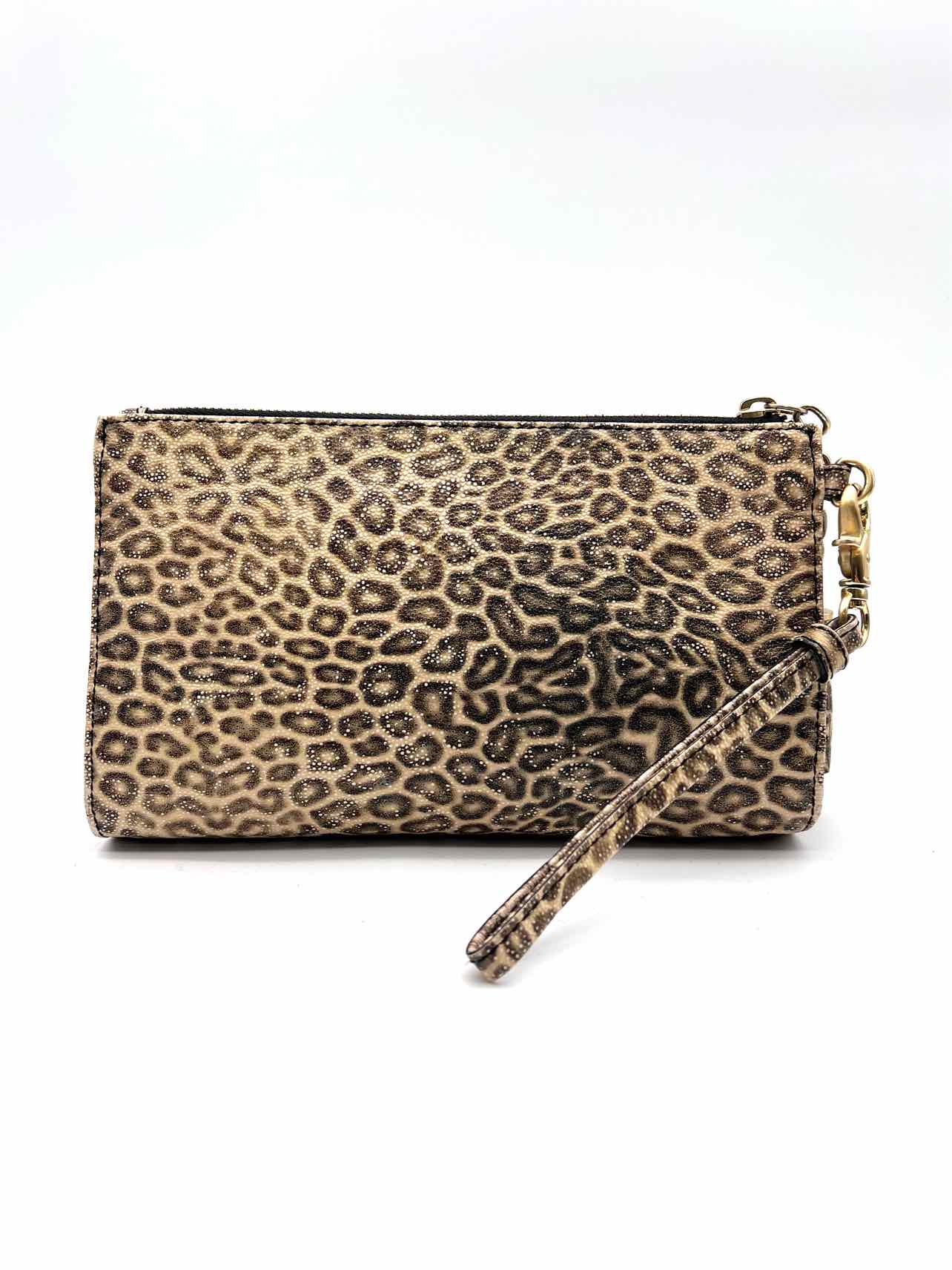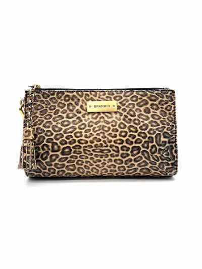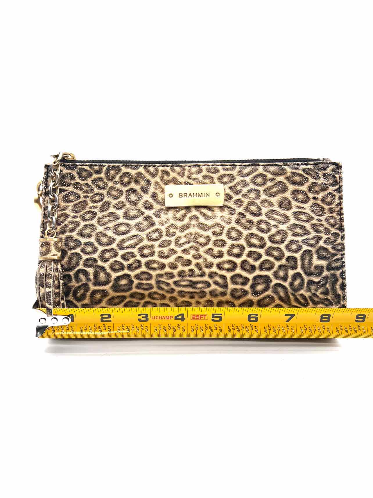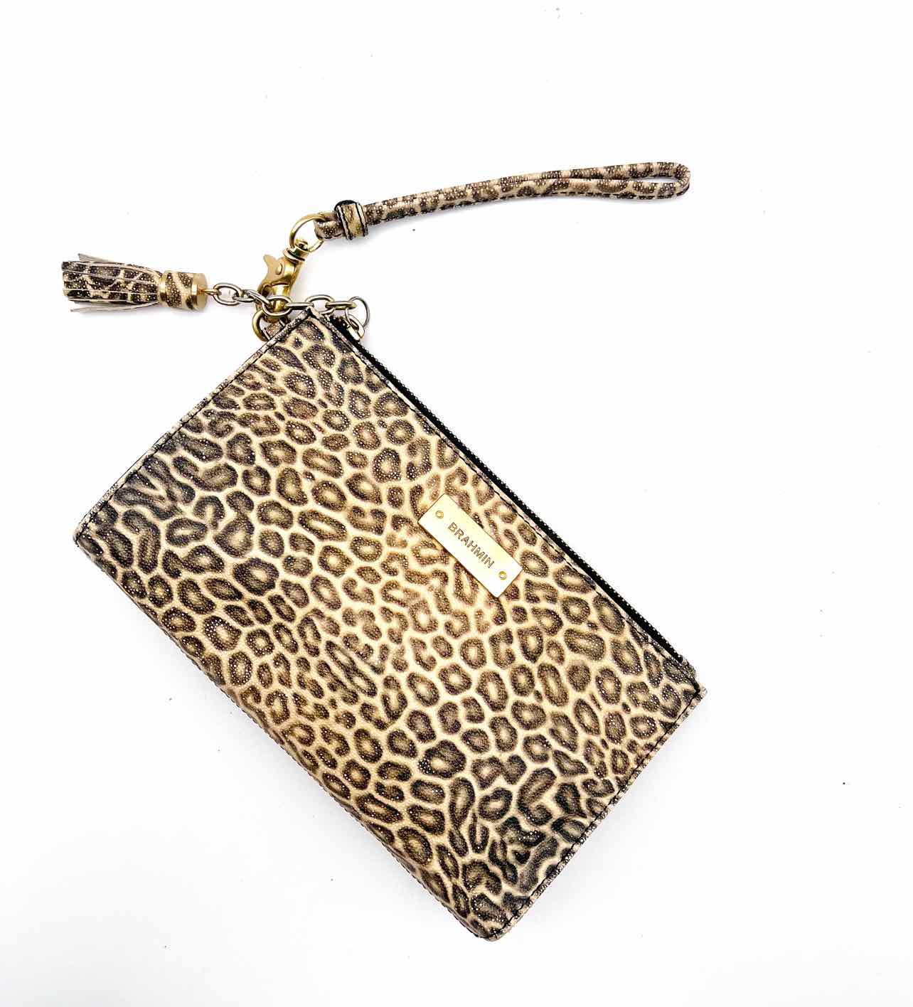 Brahmin Beige/Taupe Animal Print Leather Designer Wristlet