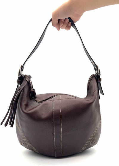 Coach Chocolate/Tan Hobo Stitched Leather Designer Purse