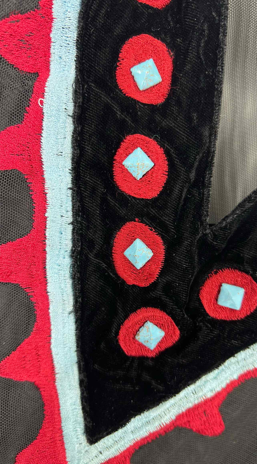 Roja Size L/XL Bk/Rd/Bl Embroidered Velvet Designer Tunic