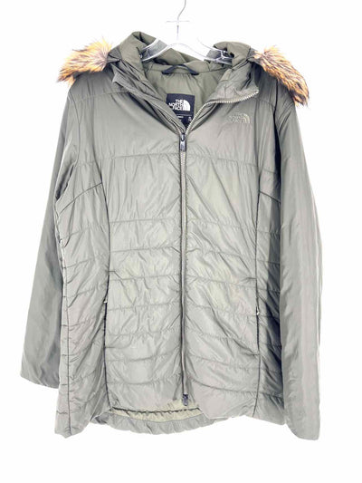 The North Face Size XL Dk Olive/Brown Puffed Faux Fur Trim Coats Coat