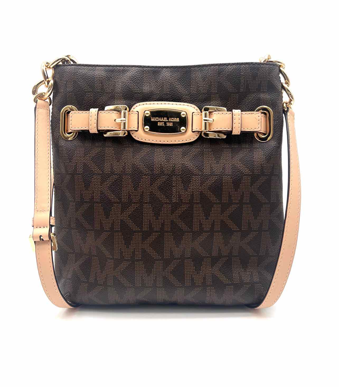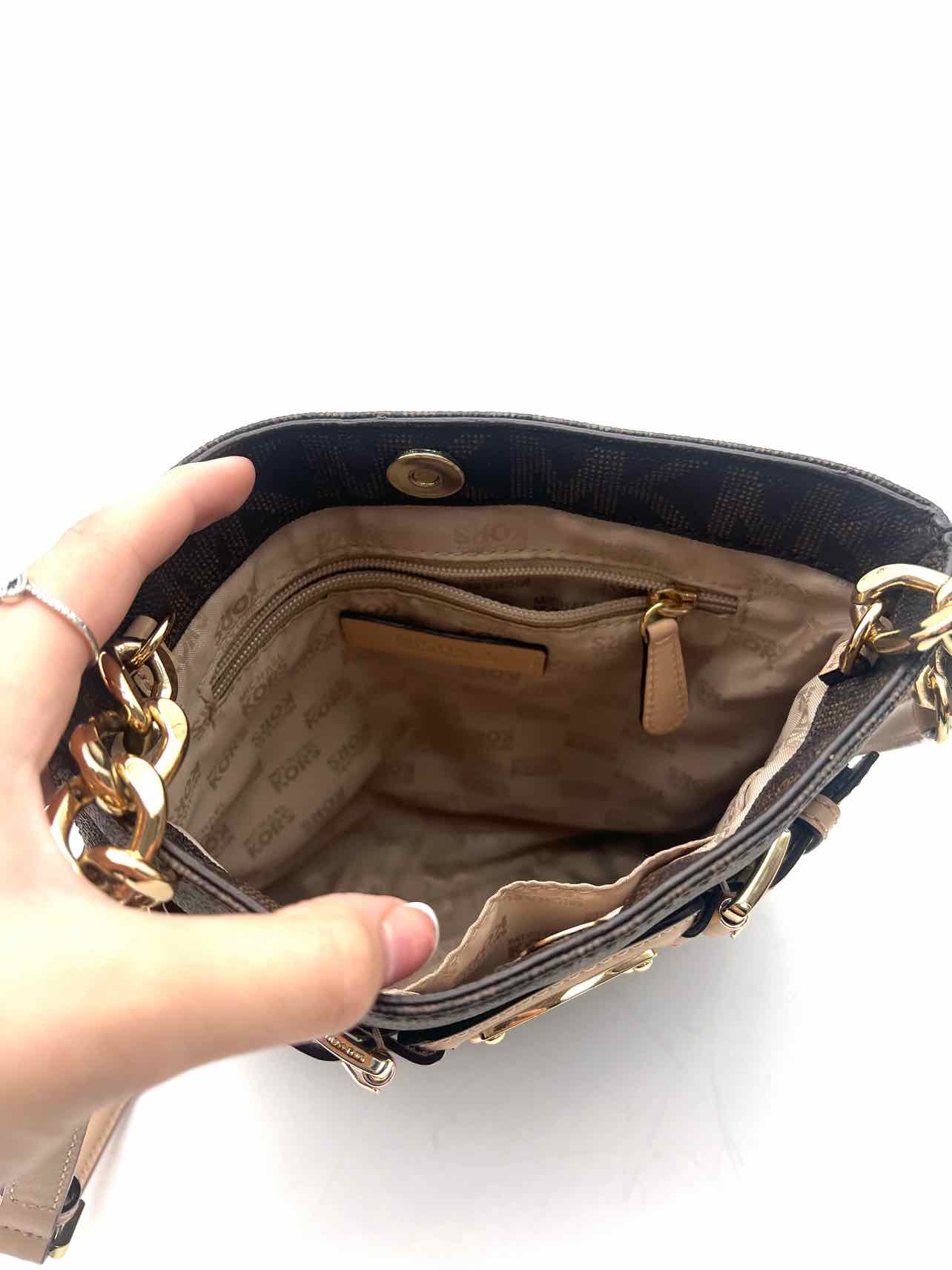 Michael Michael Kors Brown/Beige Buckle Monogrammed Designer Crossbody Purse