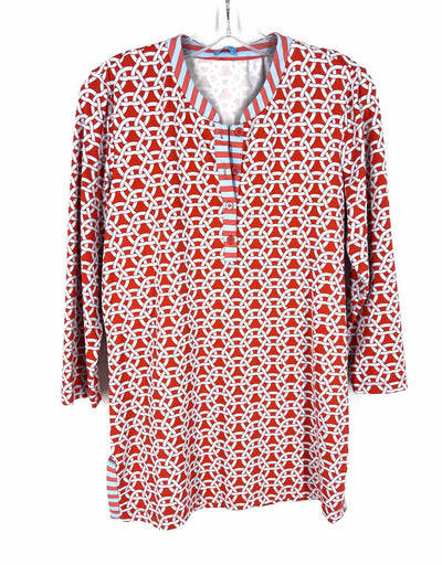 J. McLaughlin Size M ? Rd/Wh/Bl Print Buttons Designer Tunic