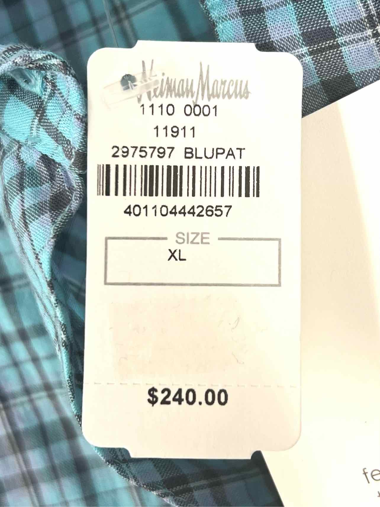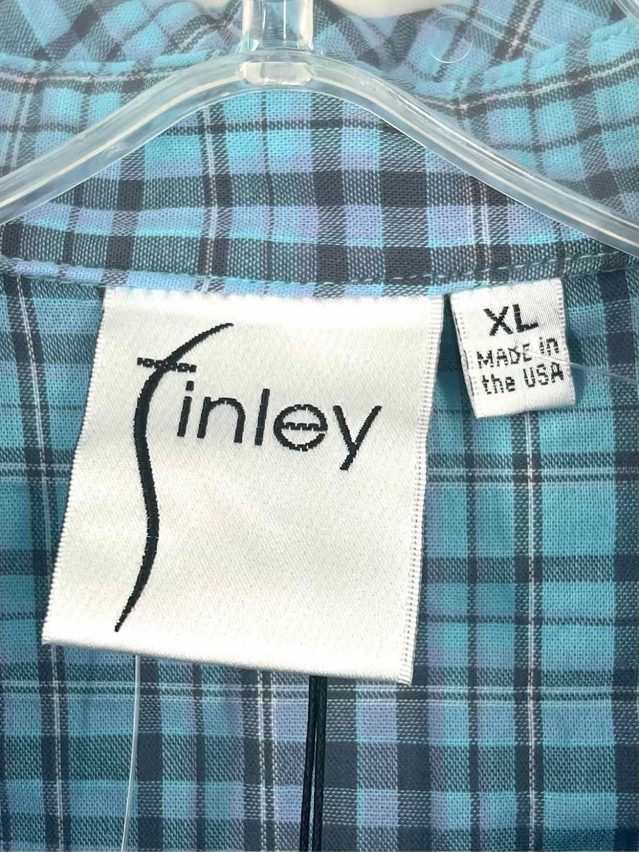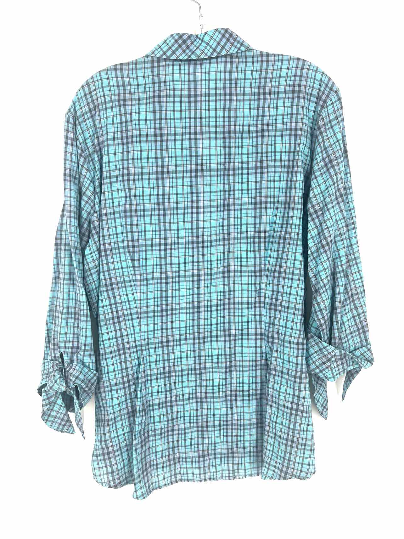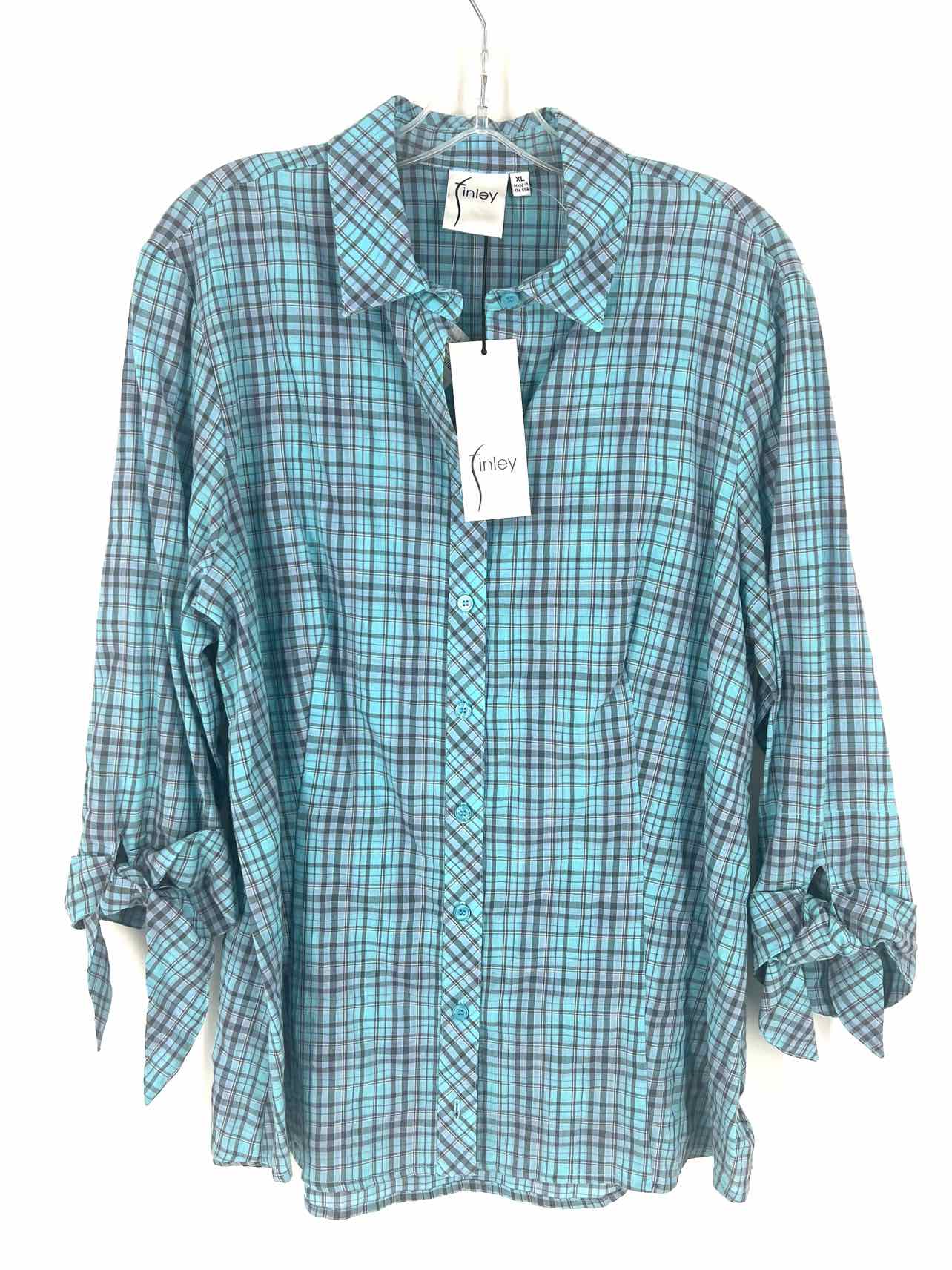 Finley Size XL Lt Blue/Lav Tie Sleeve Plaid NEW Designer Blouse