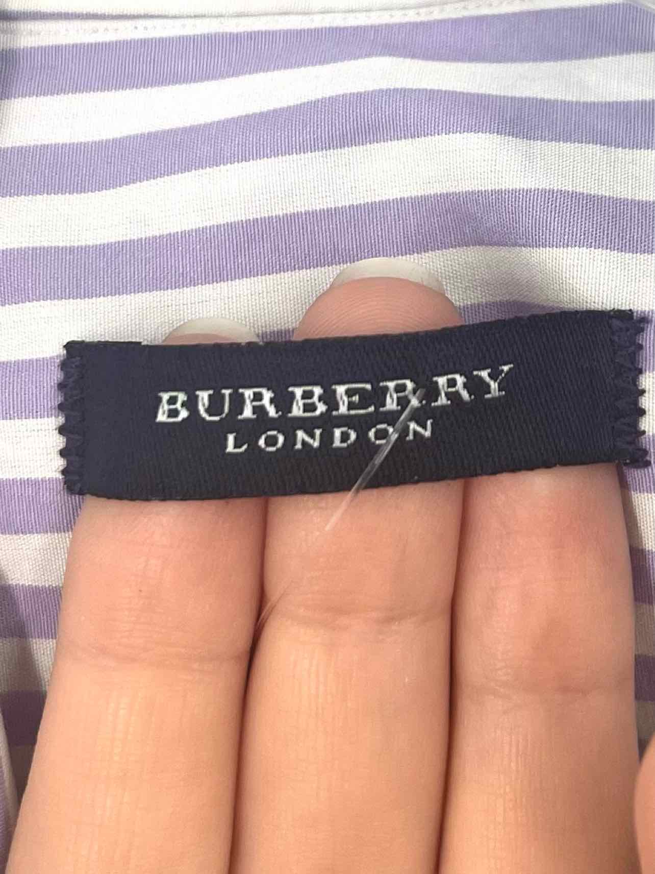 Burberry Size L White/Lav Stripe Men's Shirt-Long Sleeve- Men's