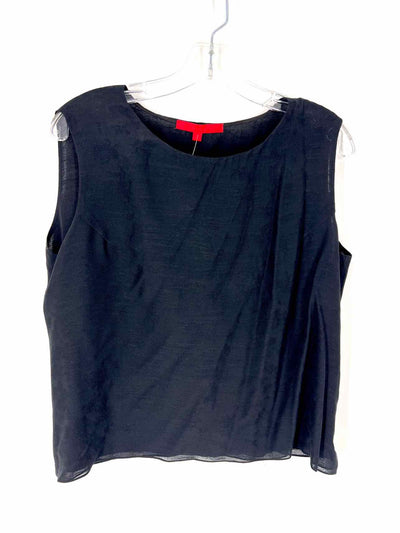 Shamask Size 16 Black Floral Silk/Wool Blend Designer Top-Sleeveless