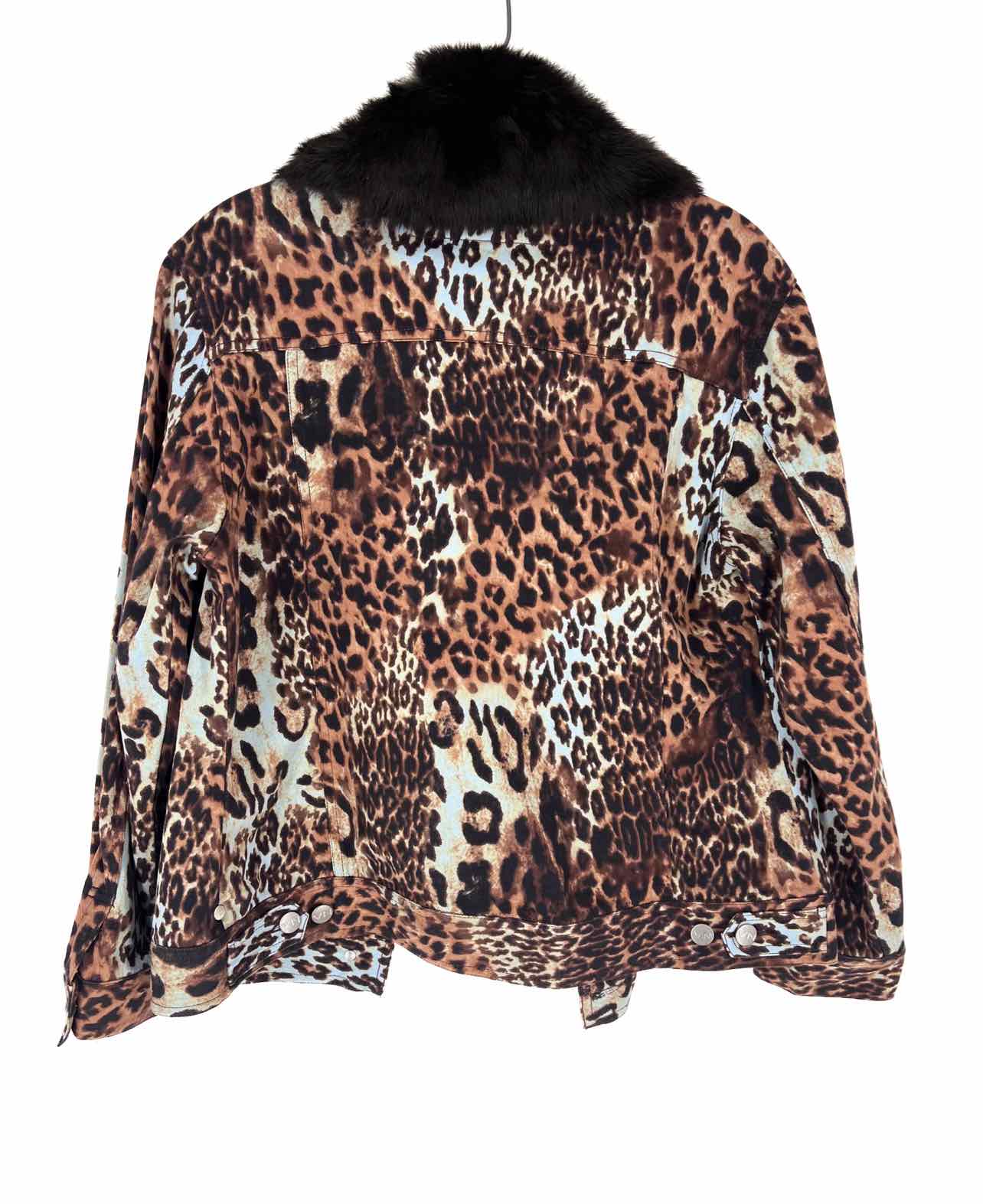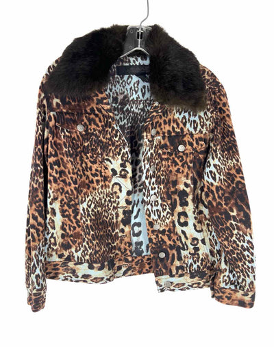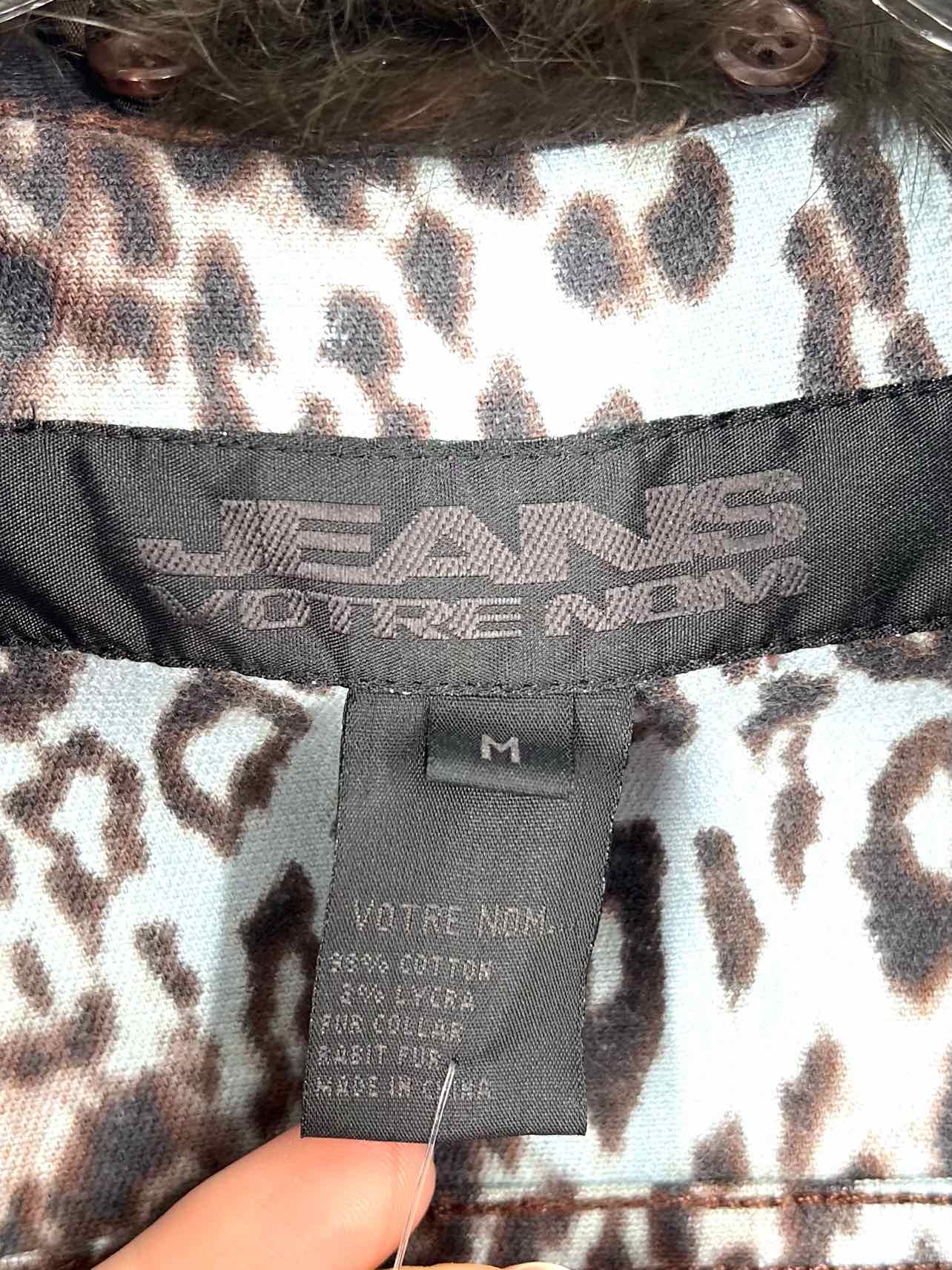 Votre Nom Size M Brown/Lt Blue Animal Print Rabbit Fur Designer Jacket