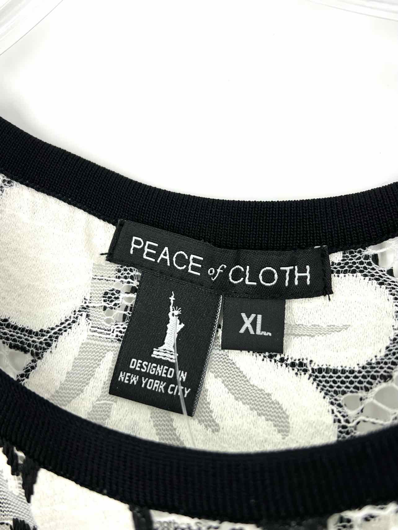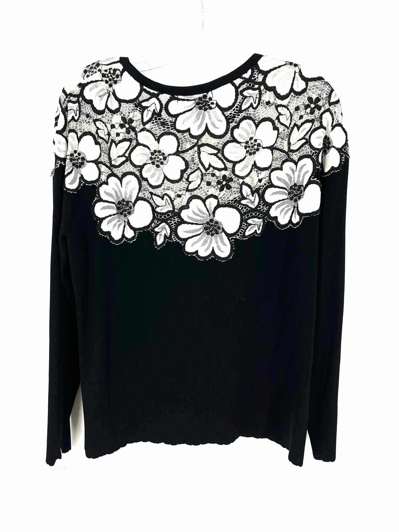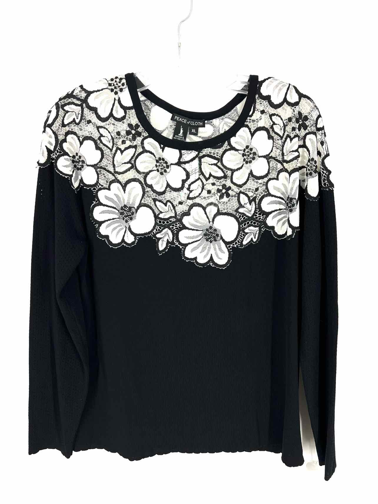Peace Of Cloth Size XL Black/White Floral Lace Blocked Tops Top-Long Sleeve