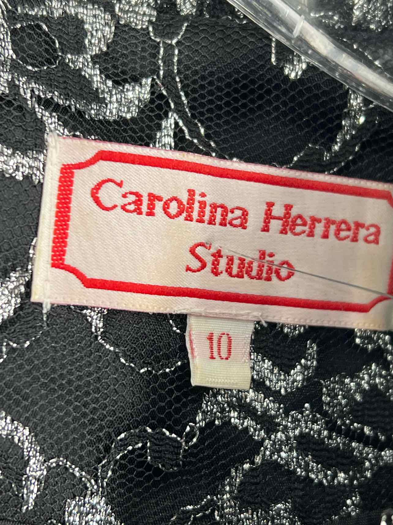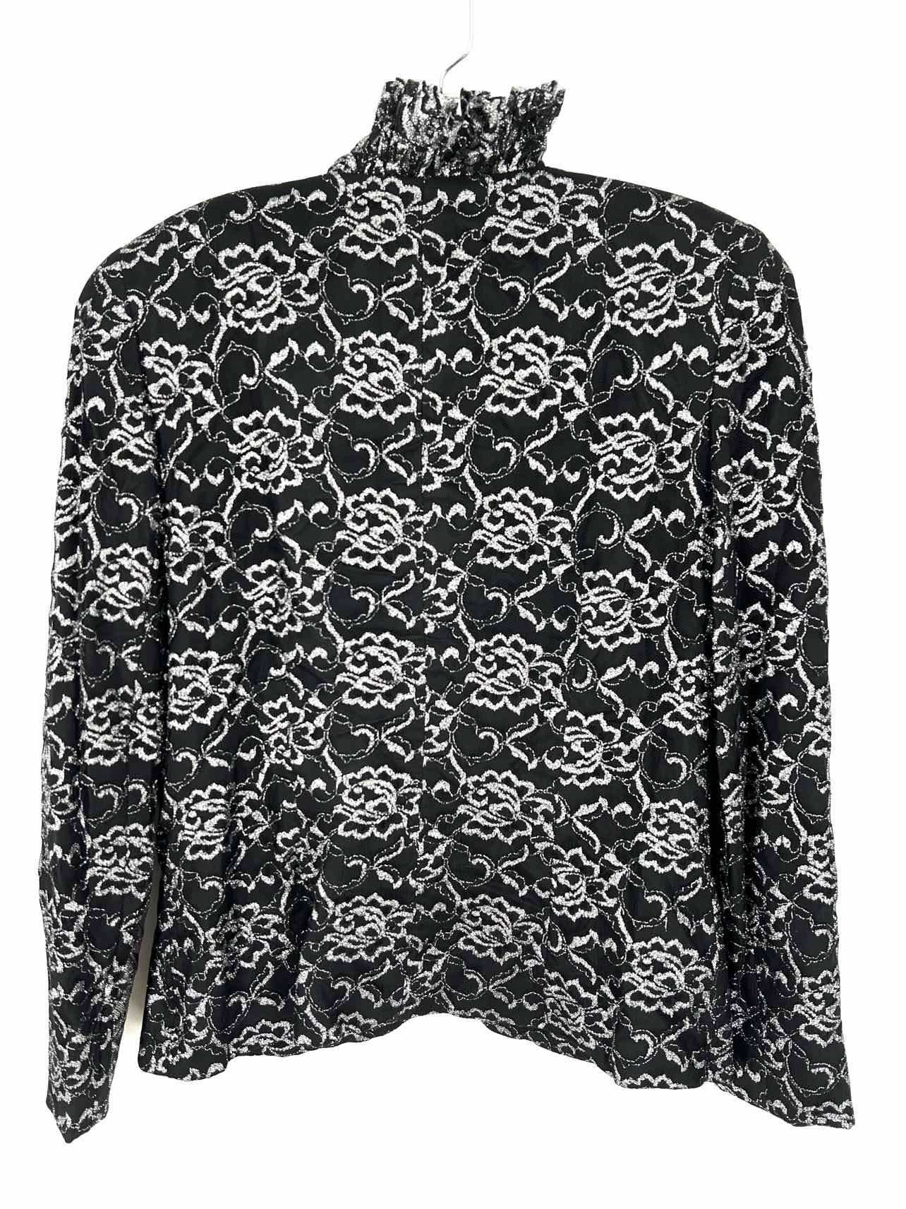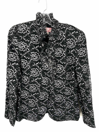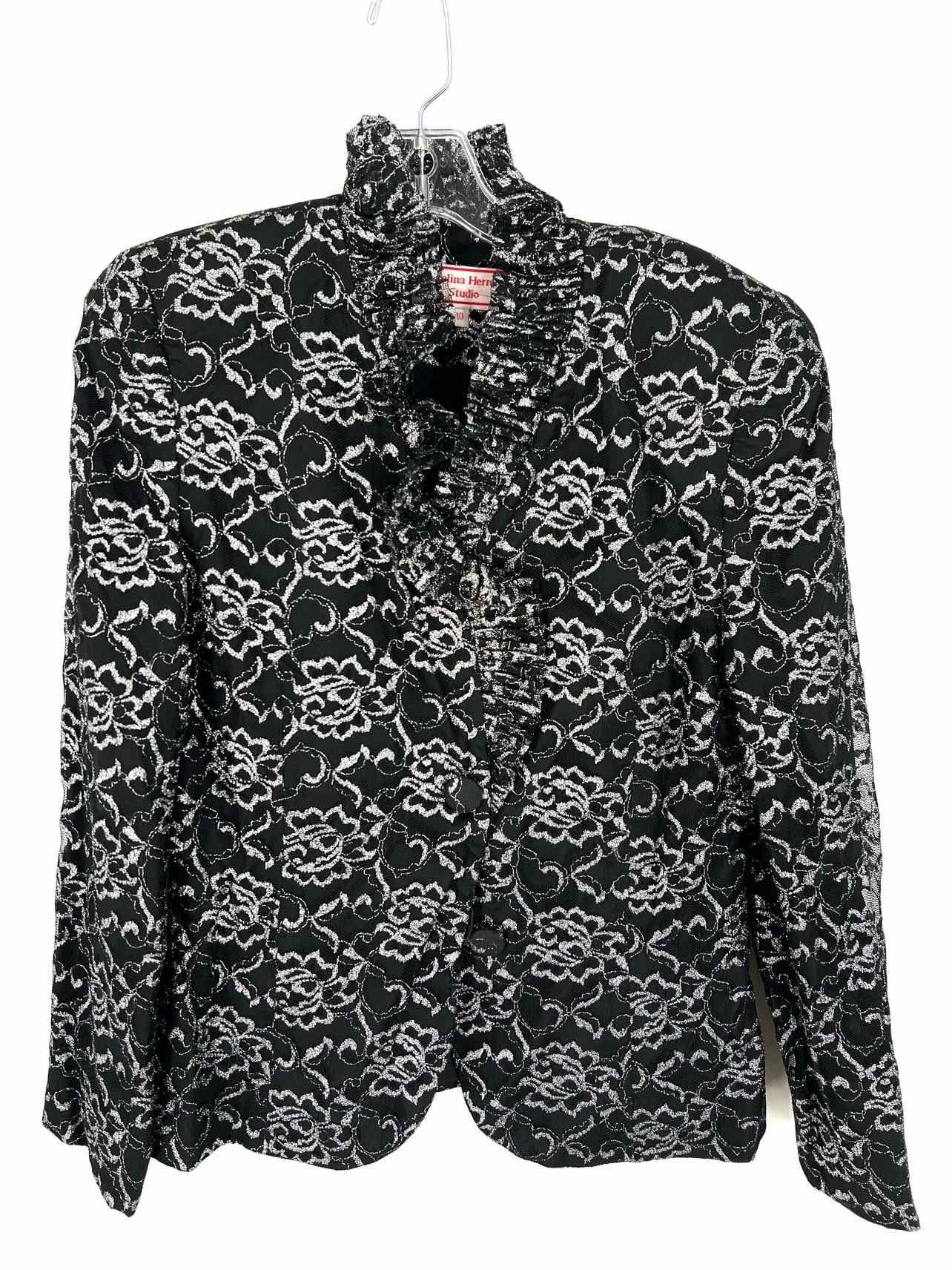 Carolina Herrera Size 10 Black/Silver Ruffle Collar Floral Lace Designer Jacket