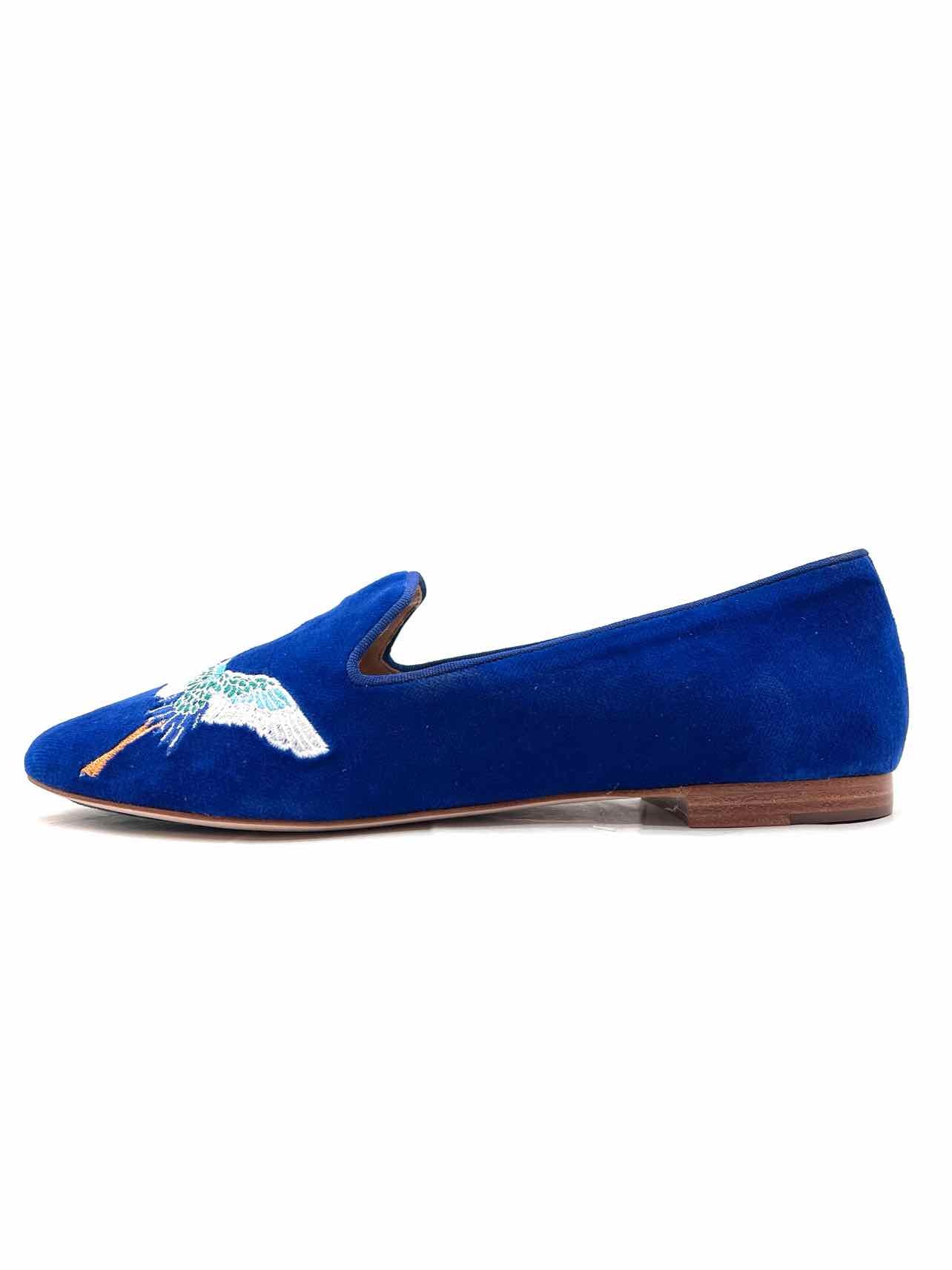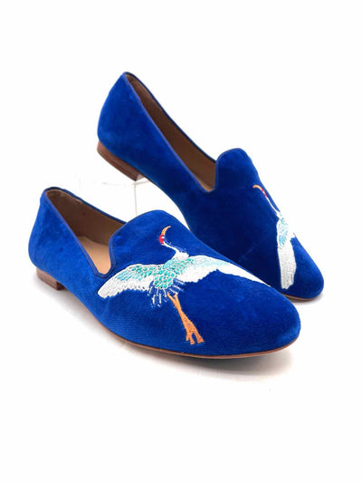 Zalo Size 8.5 Blue/Multi Embroidered Velvet Shoes Loafers
