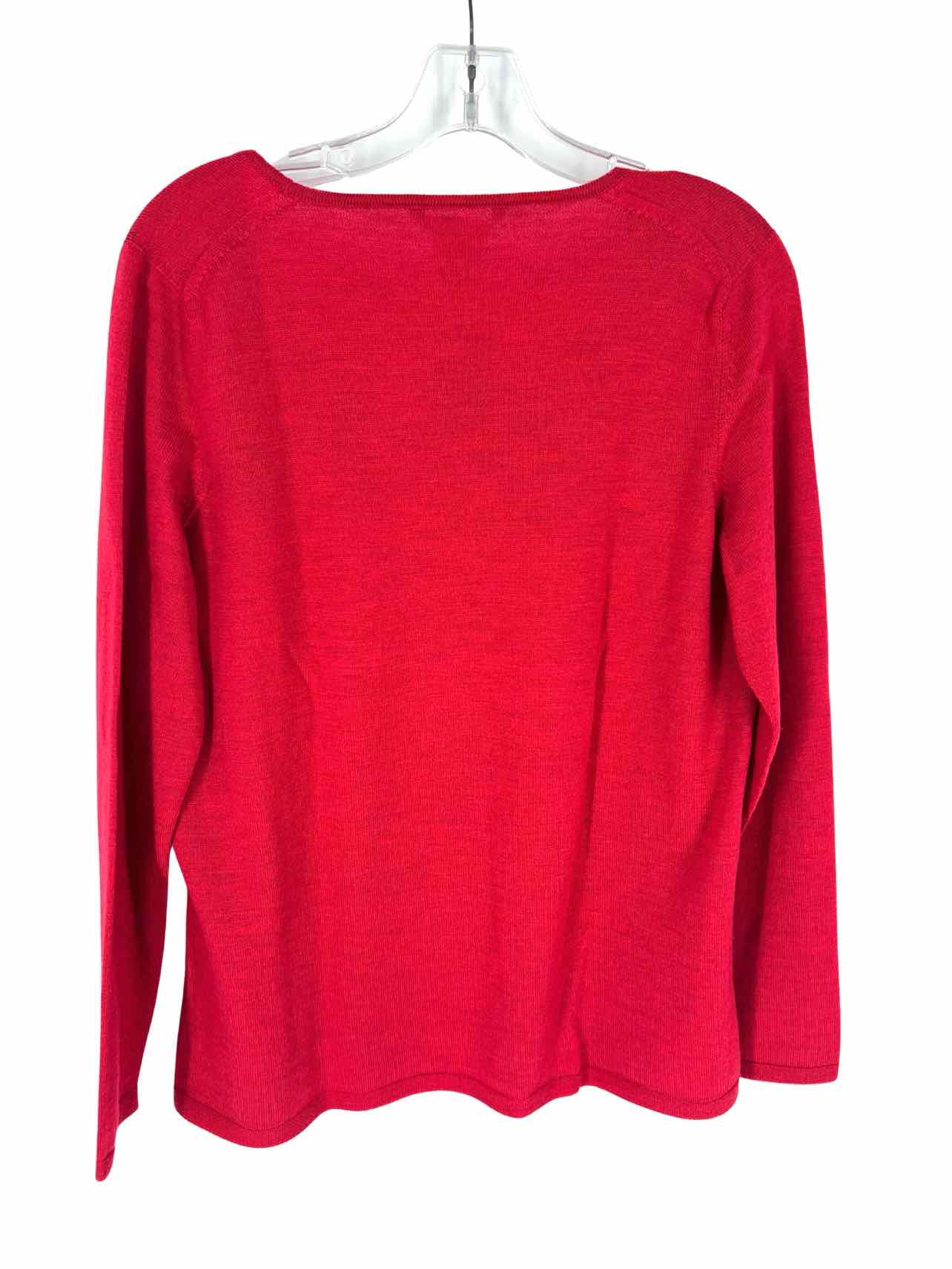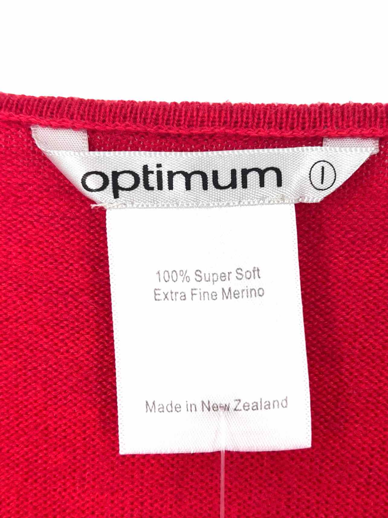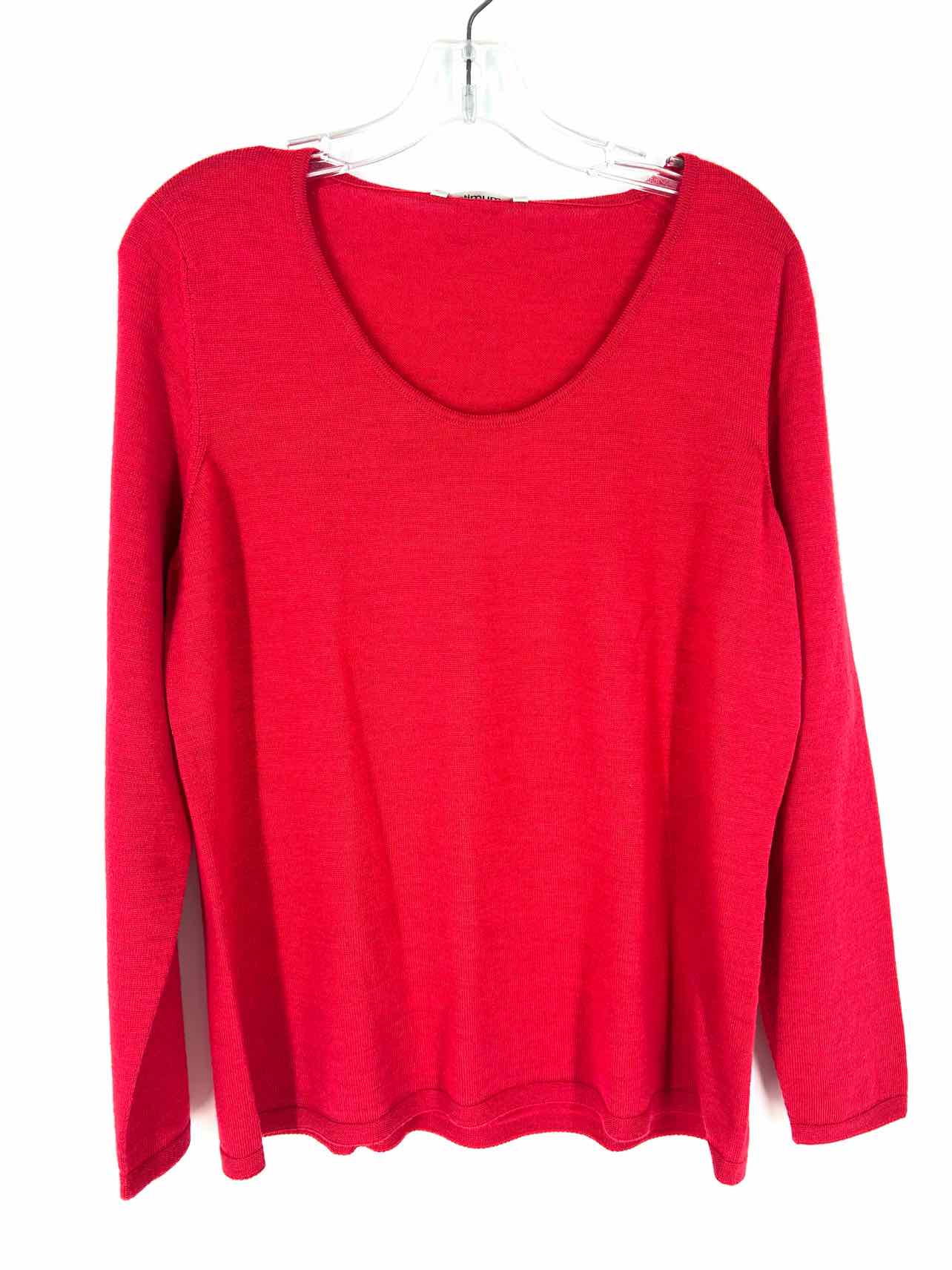 Optimum Size L Red Knit Merino Wool Designer Top-Long Sleeve