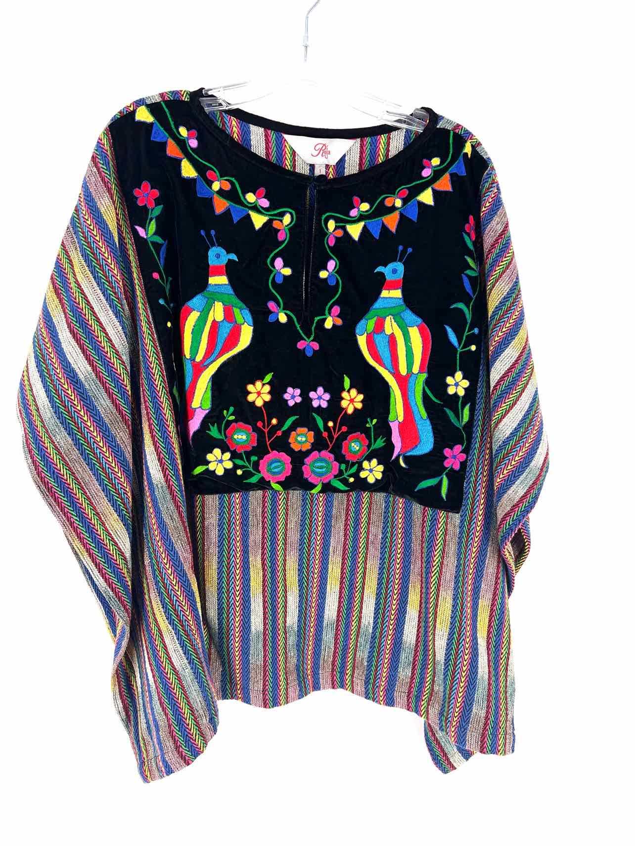 Roja Size L/XL Black/Multi Embroidered Velvet Designer Tunic