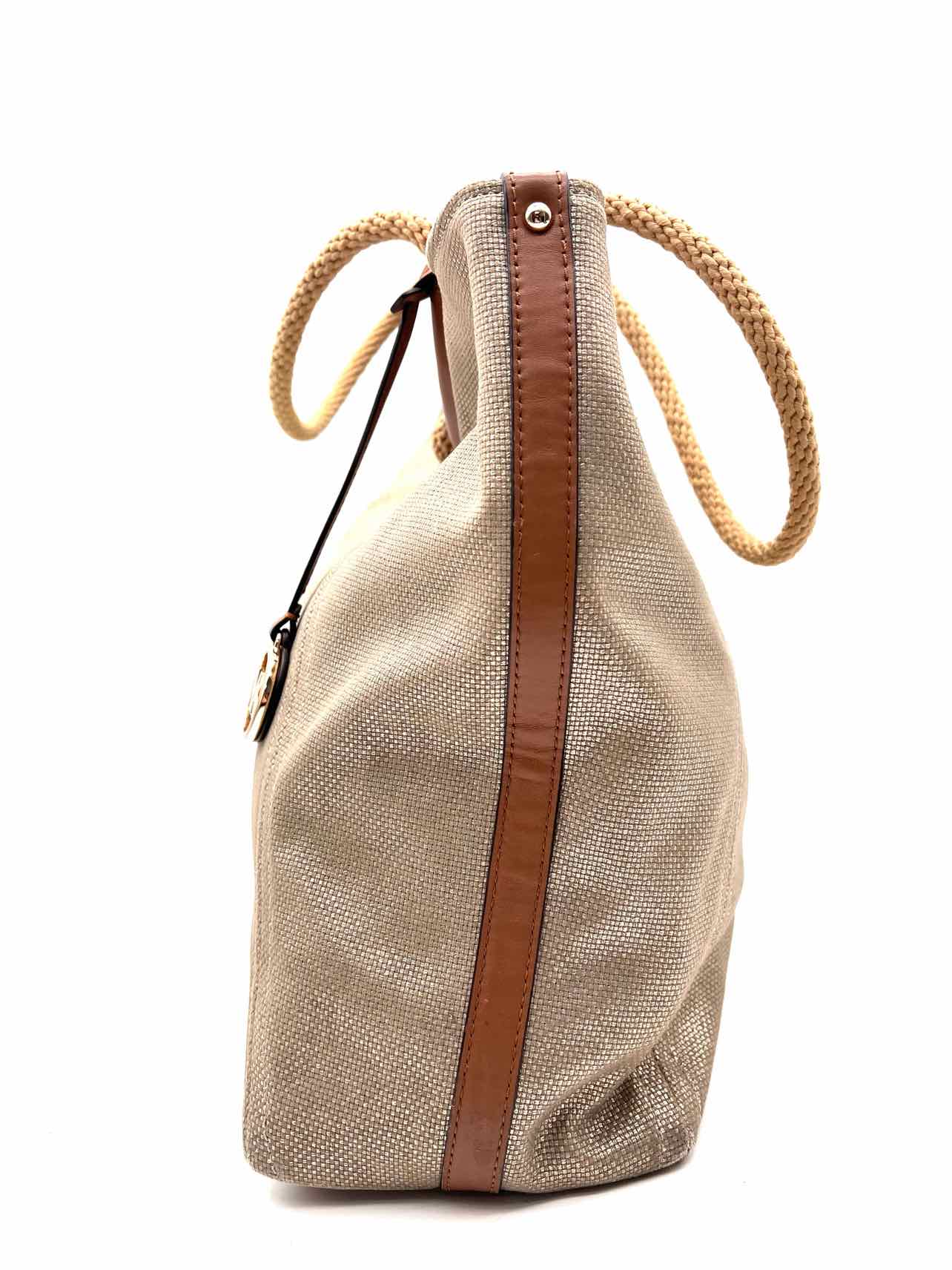 Michael Michael Kors Taupe/Gold Metallic Fabric/Leather NEW Designer Tote