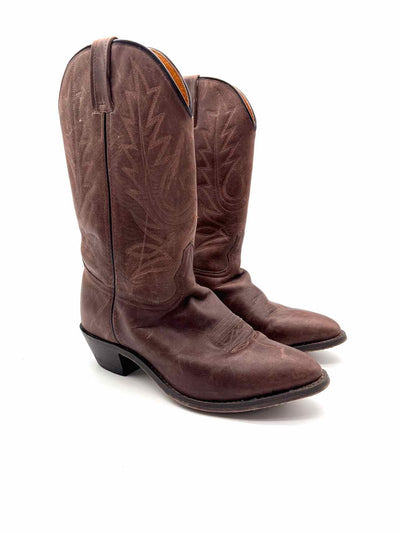 Size 8 Brown Embroidered Leather Shoes Cowboy Boots