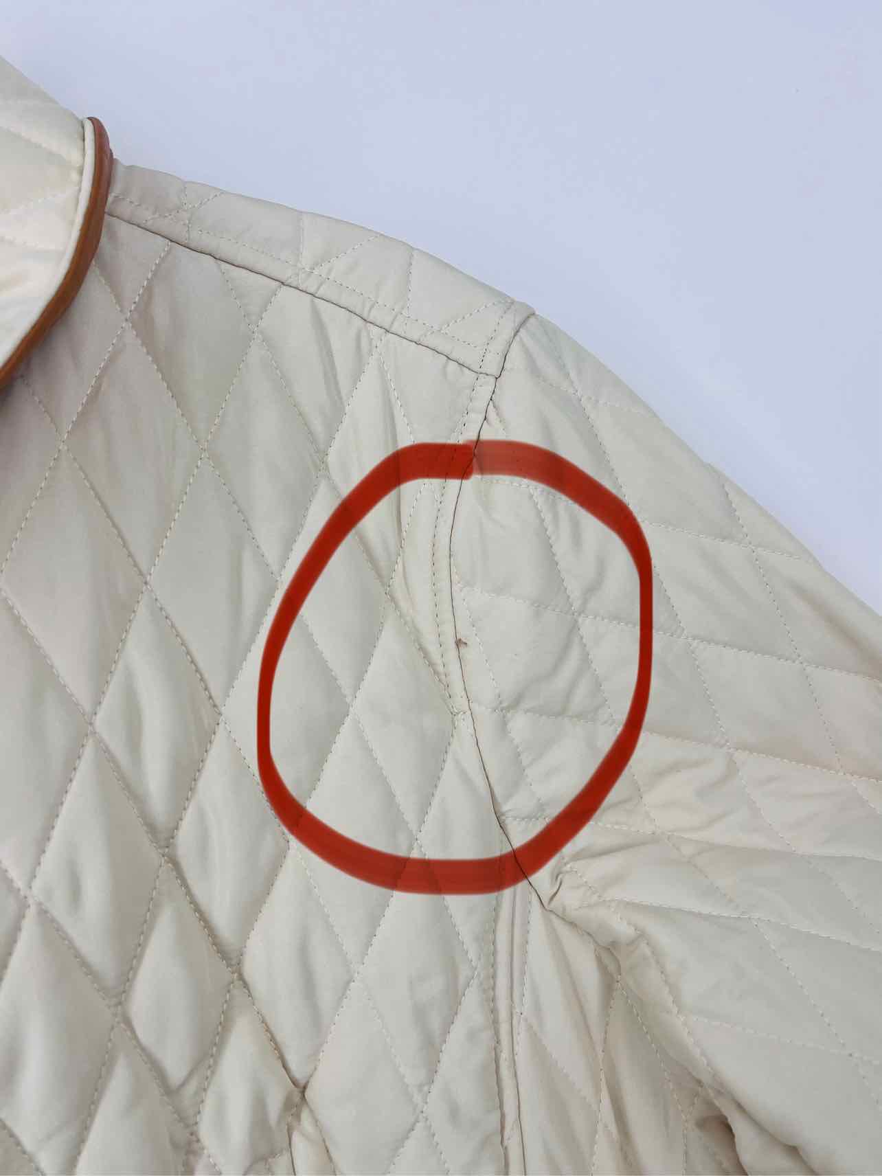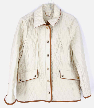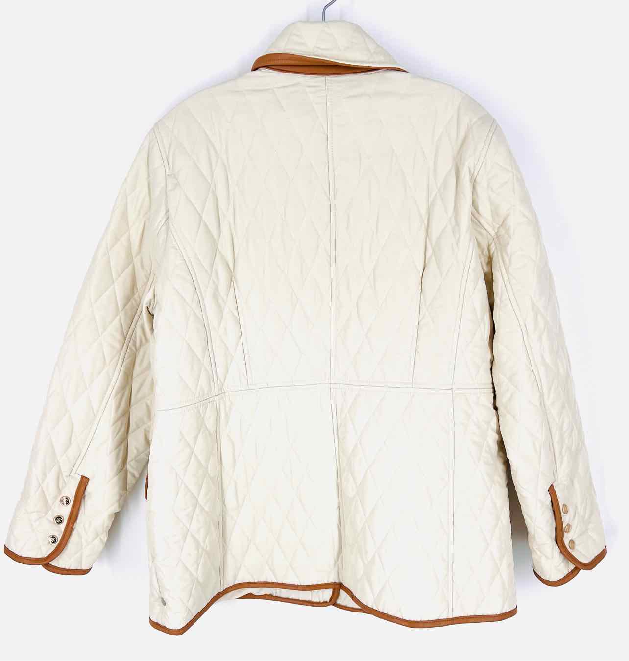 Chico's Size 2 Ivory/Tan Trim Quilted NB Jacket