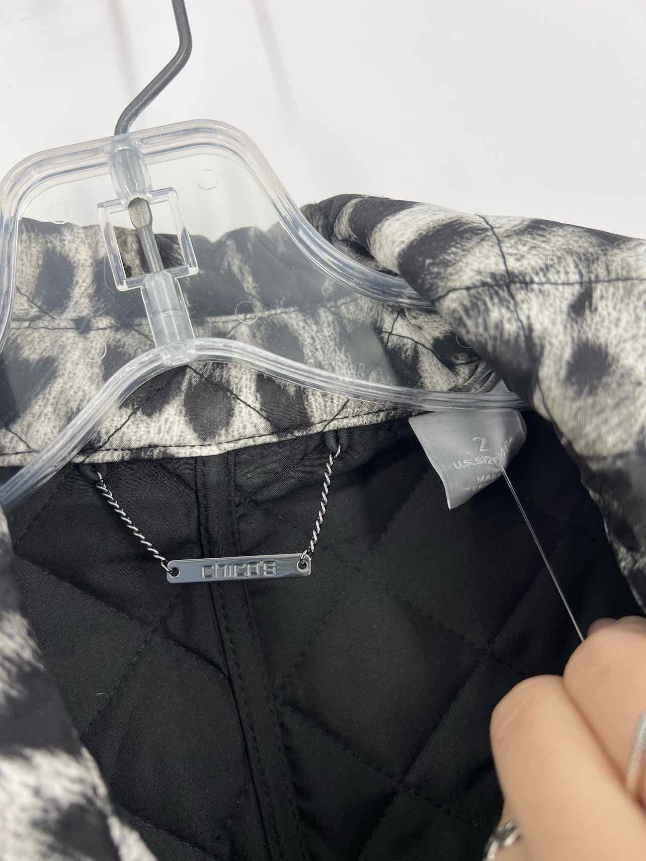 Chico's Size 2 Gray/Black Animal Print Quilted NB Jacket