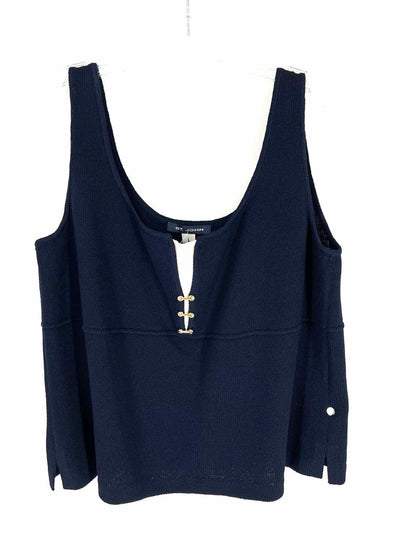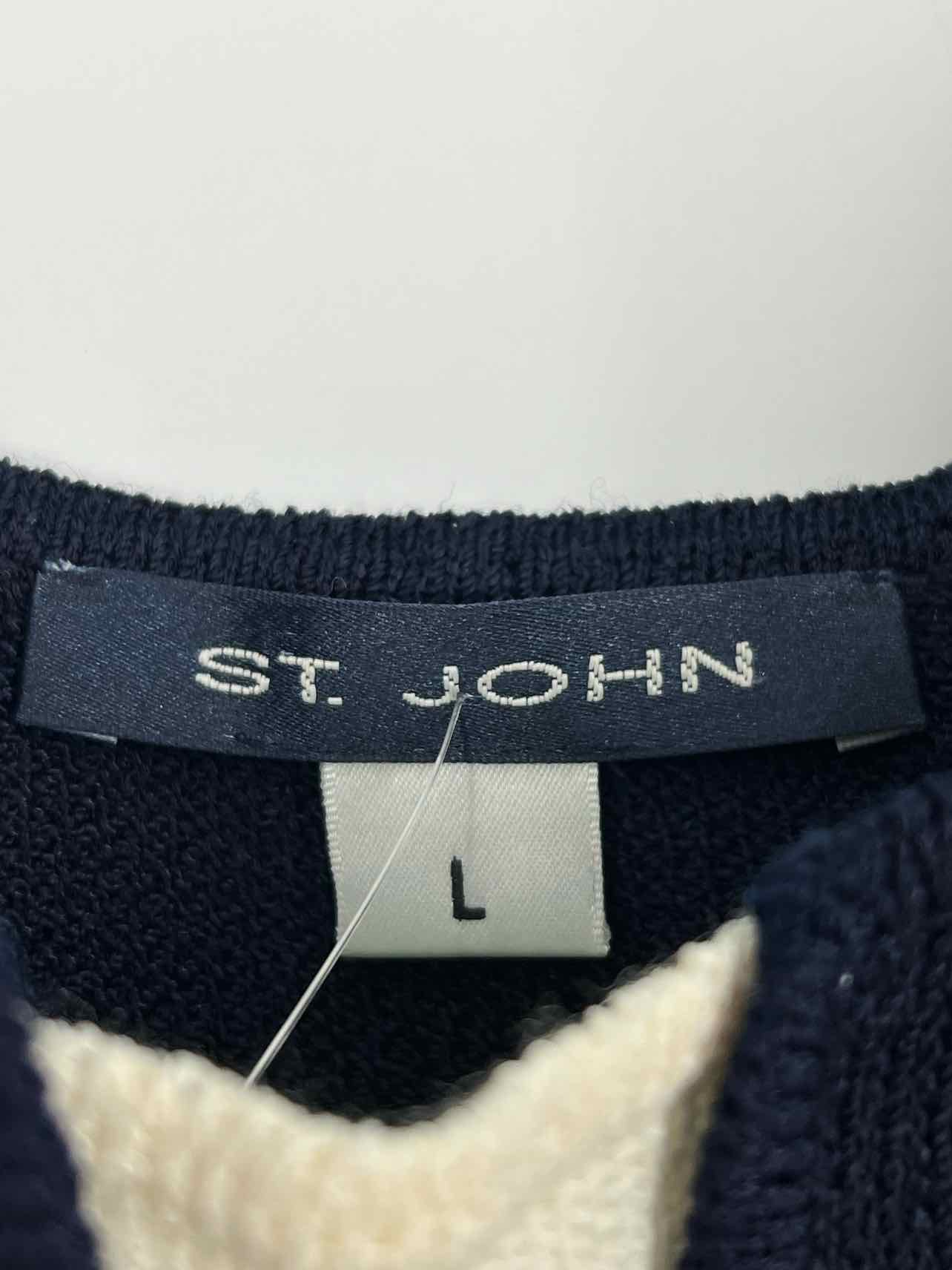 St. John Size L Navy/White Knit Embellished Designer Top-Sleeveless