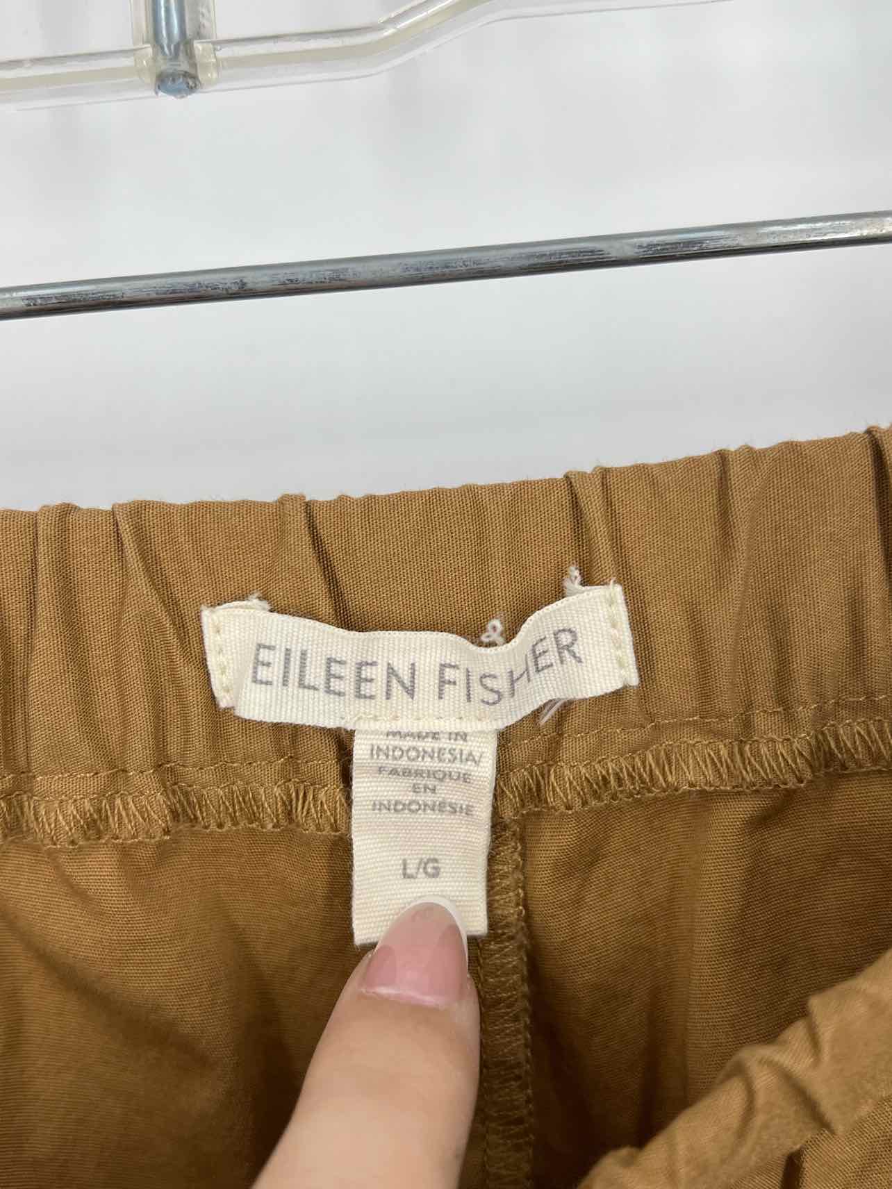 Eileen Fisher Size L Khaki Stretch Wide Leg Designer Pants