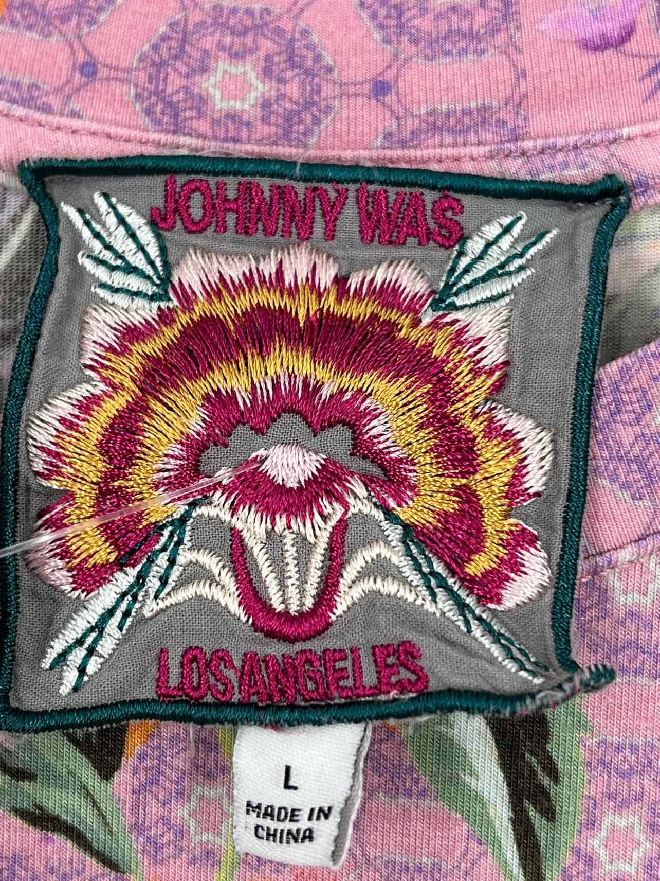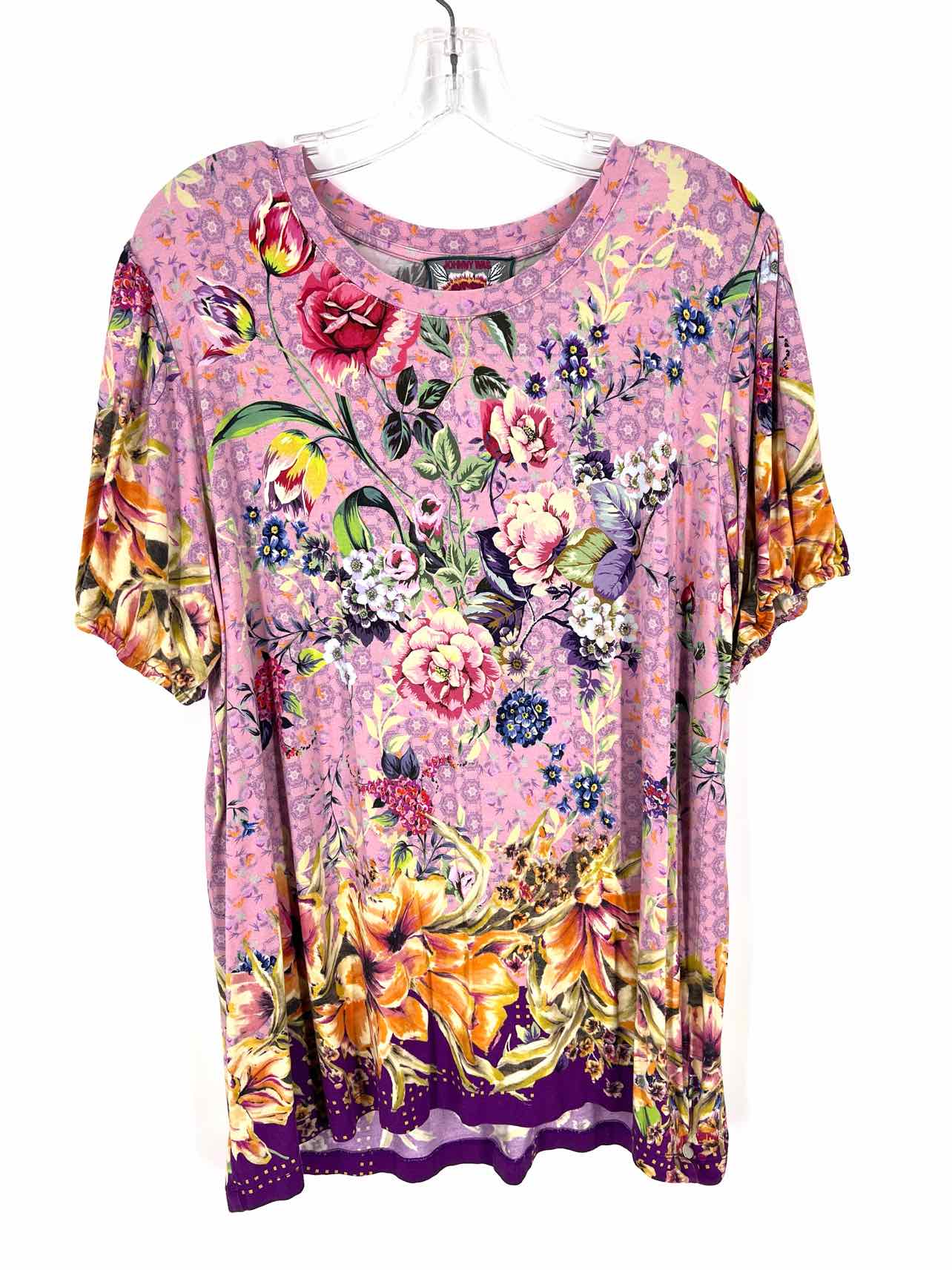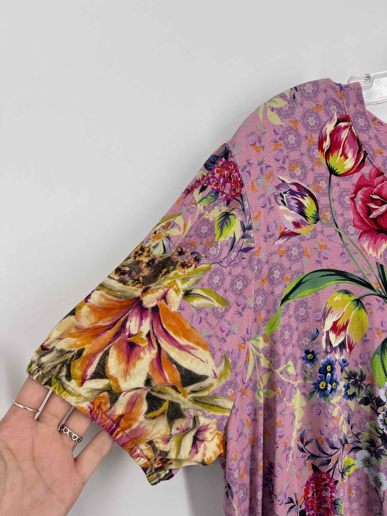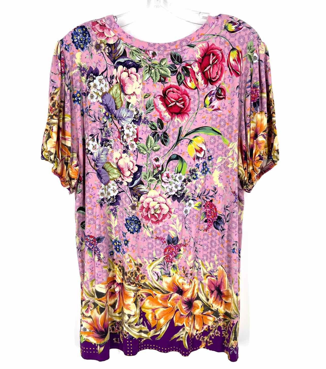 Johnny Was Size L Pink/Multi Floral Designer Top-Short Sleeve