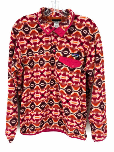 Patagonia Size L Hot Pink/Orange Print Fleece Jackets Pullover