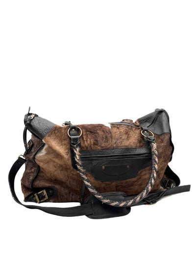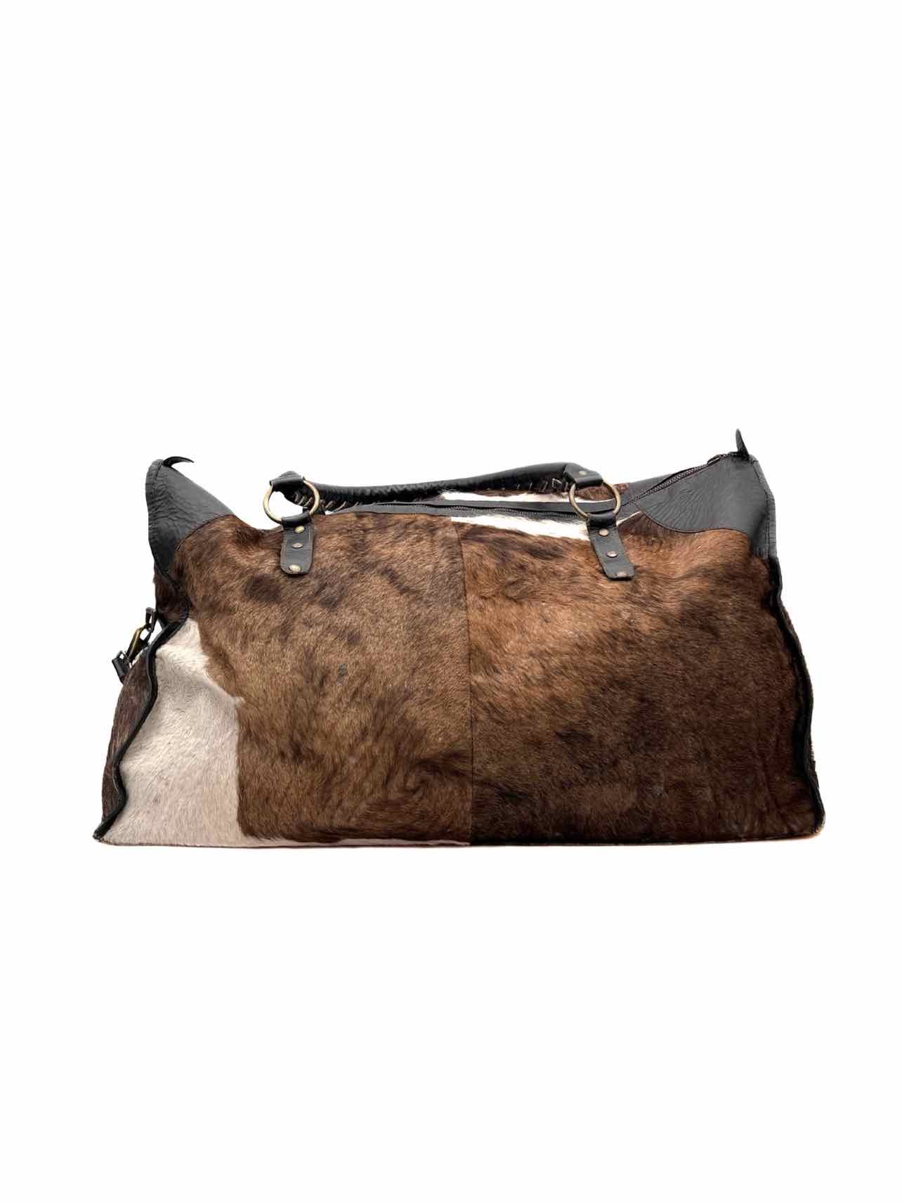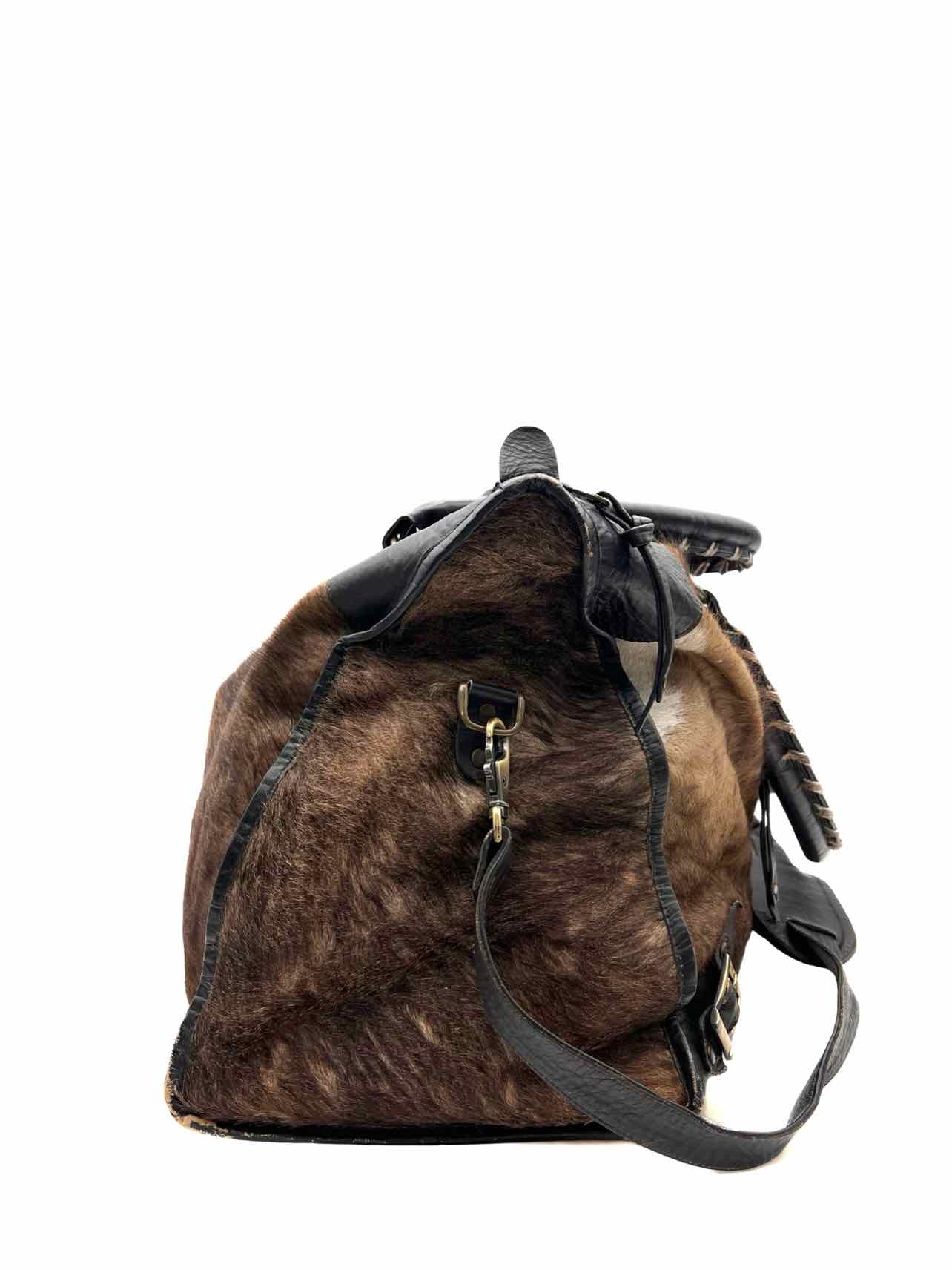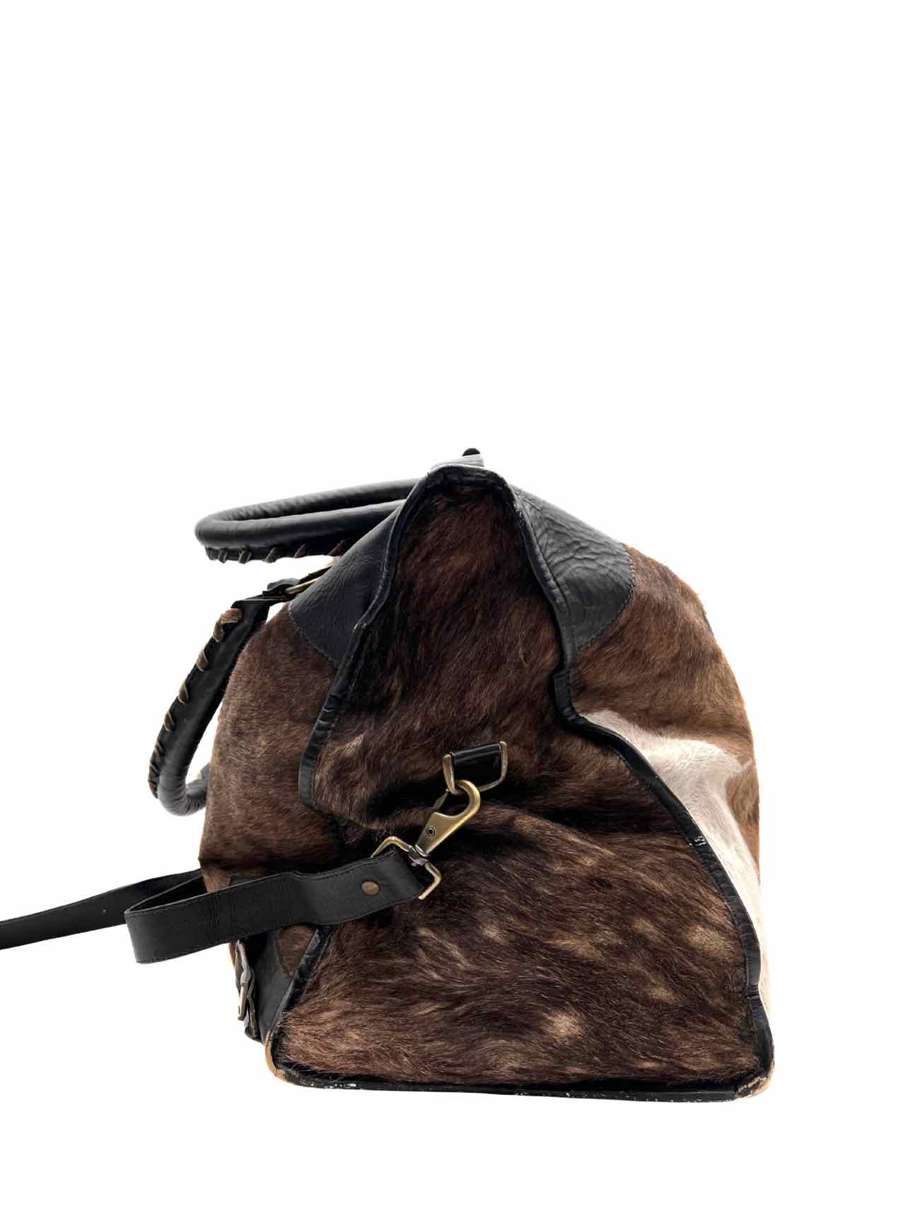 Brown/White Buckles Cowhide AS IS Luggage Duffle Bag