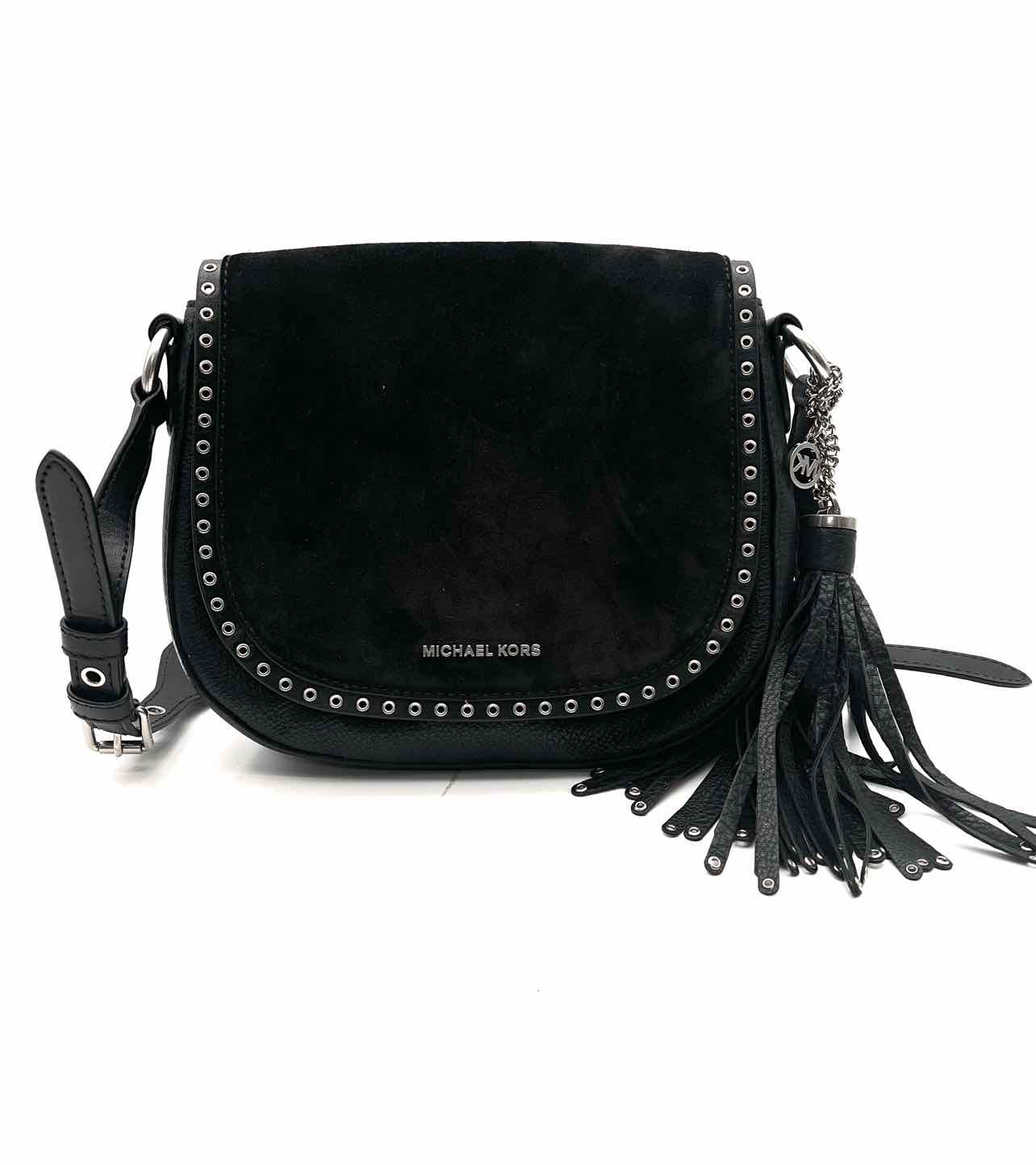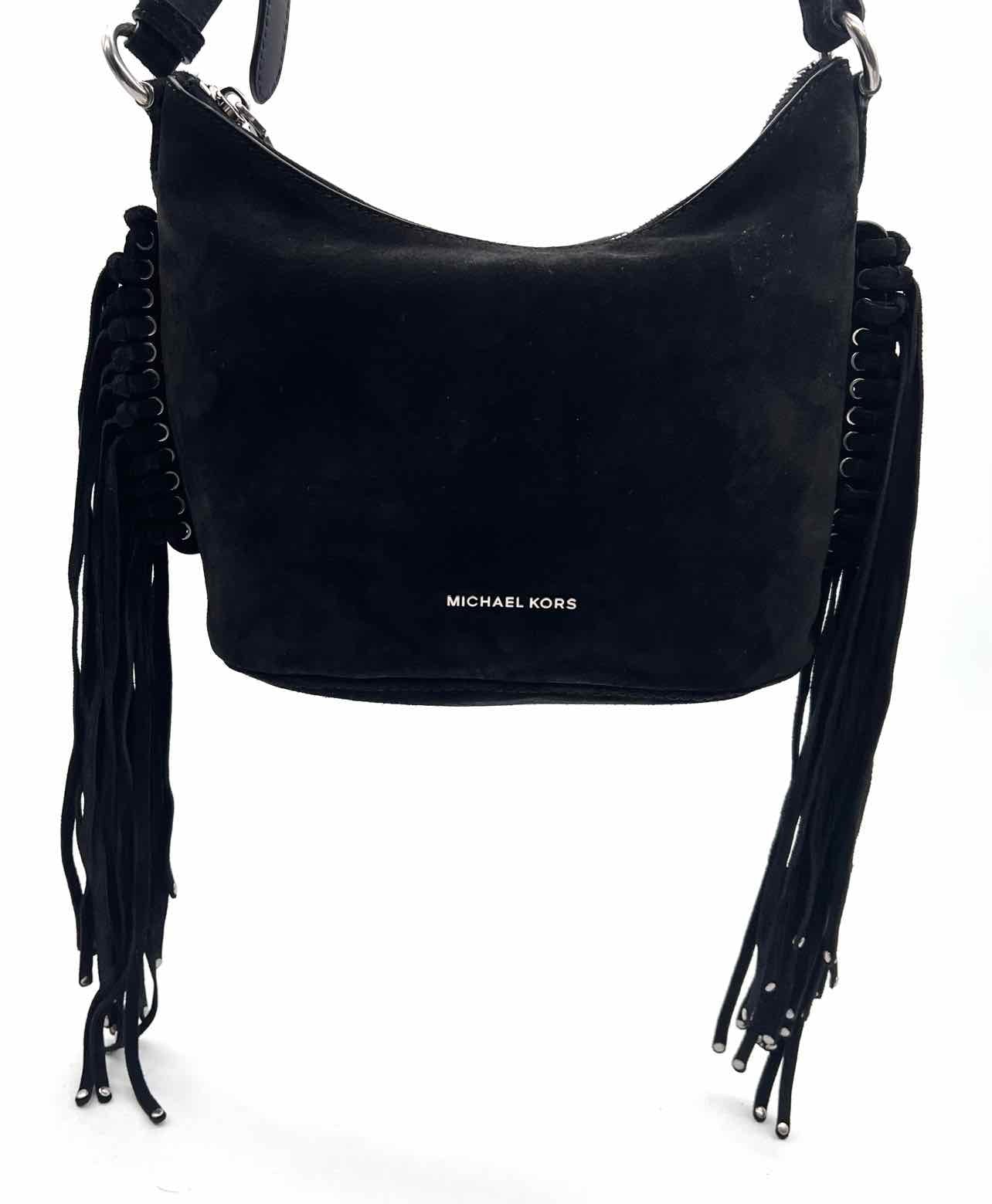 Michael Michael Kors Black/Silver Fringe Suede Designer Crossbody Purse