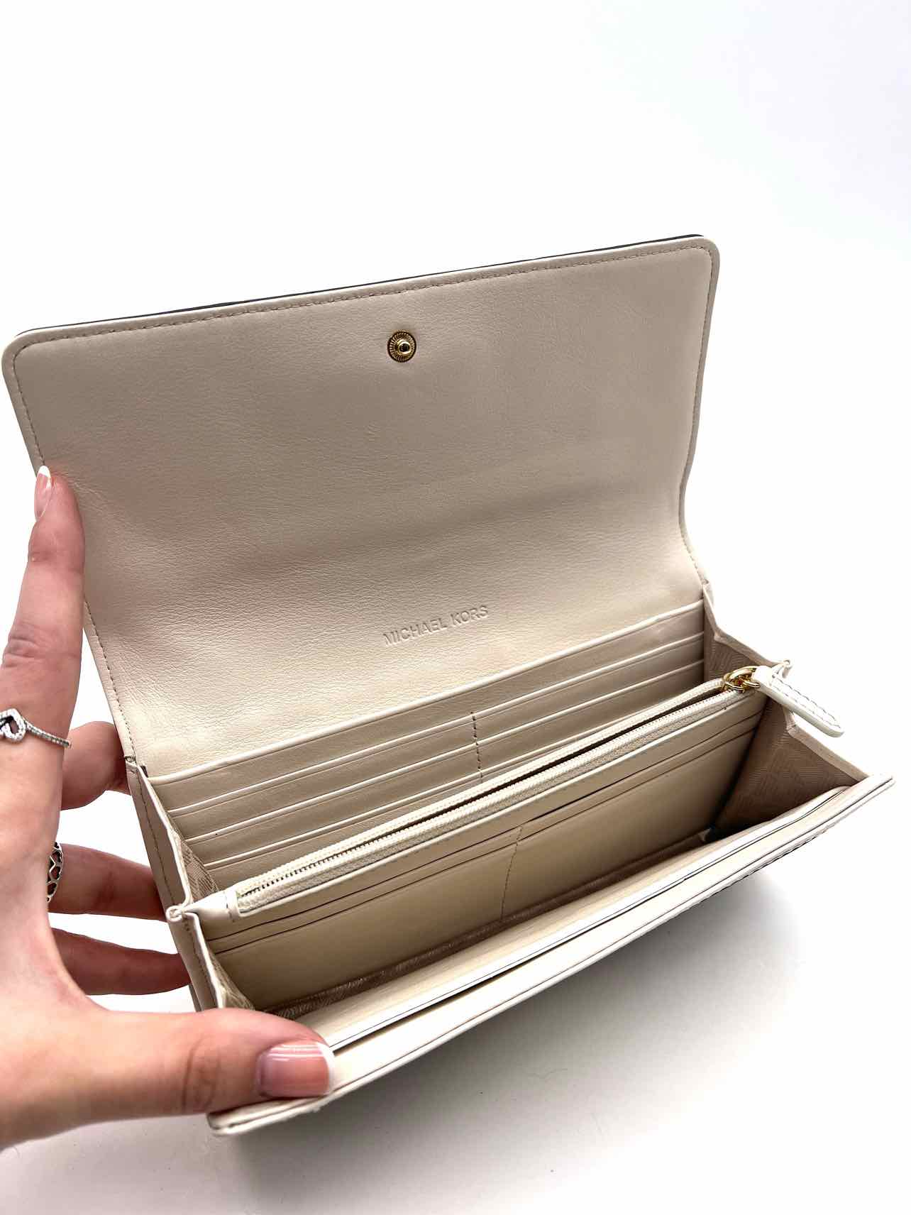 Michael Michael Kors Bone/Gold Buckle Leather Designer Clutch Purse