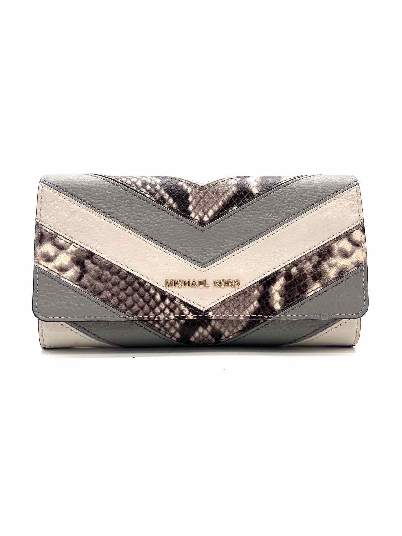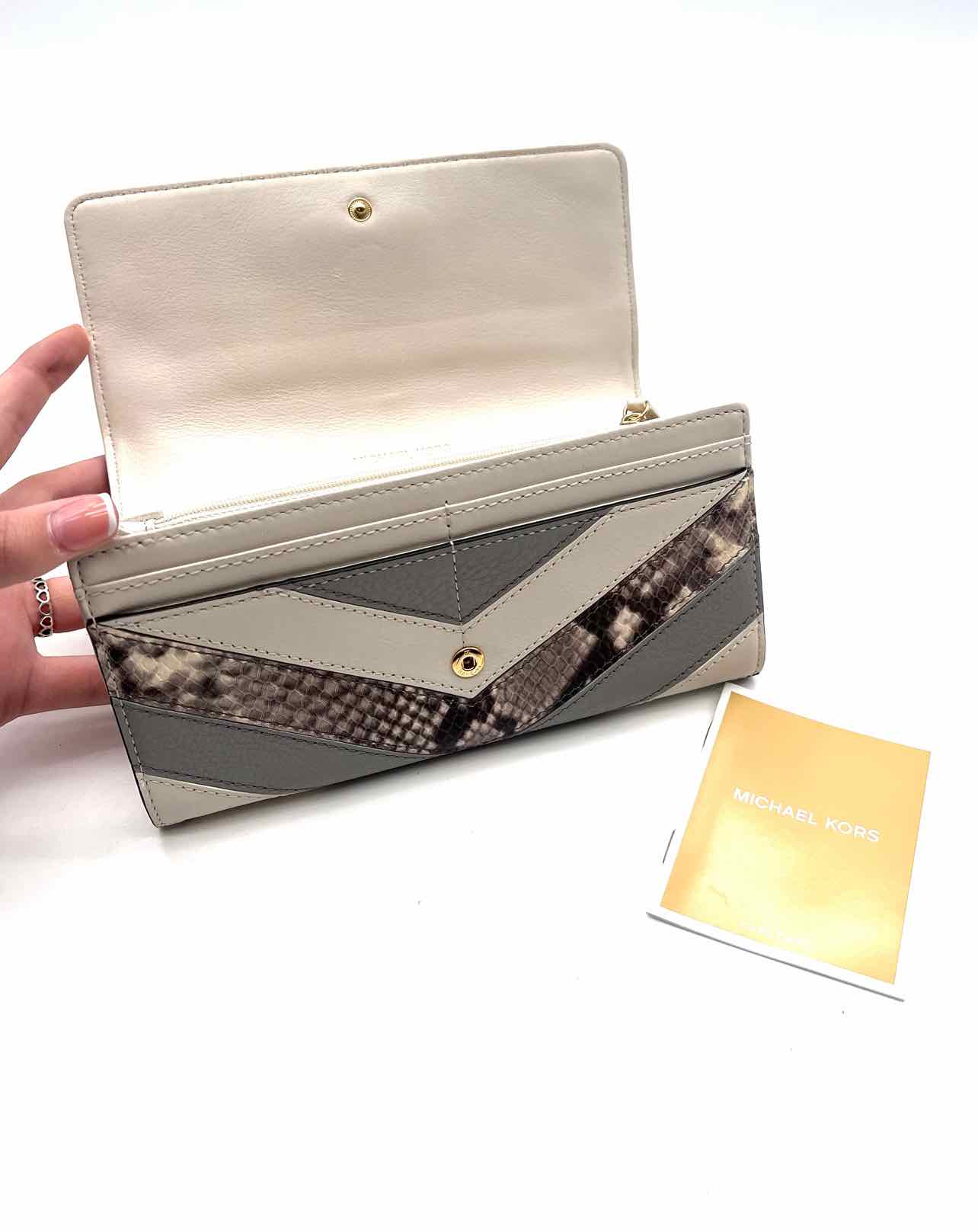 Michael Michael Kors Cream/Gray Reptile Leather Designer Wallet