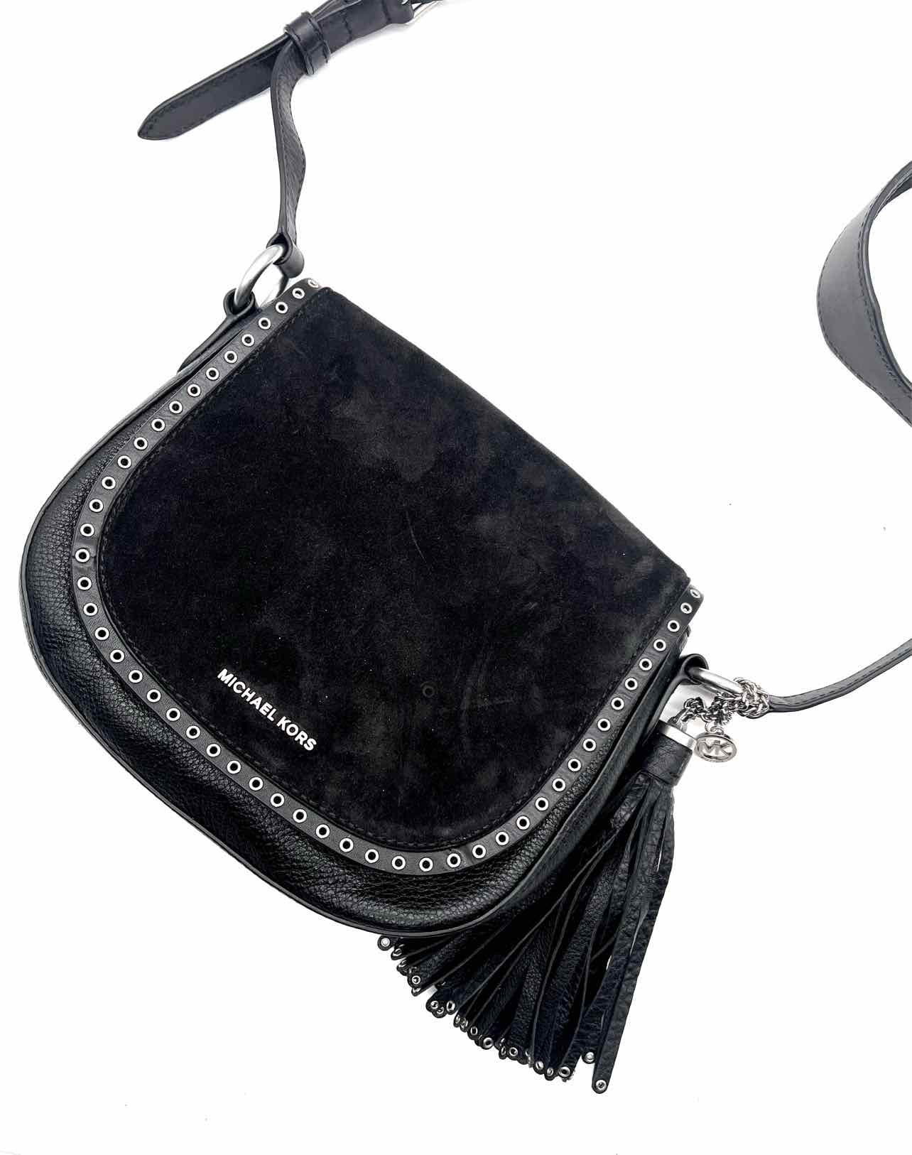 Michael Michael Kors Black/Silver Grommet Suede/Leather Designer Crossbody Purse