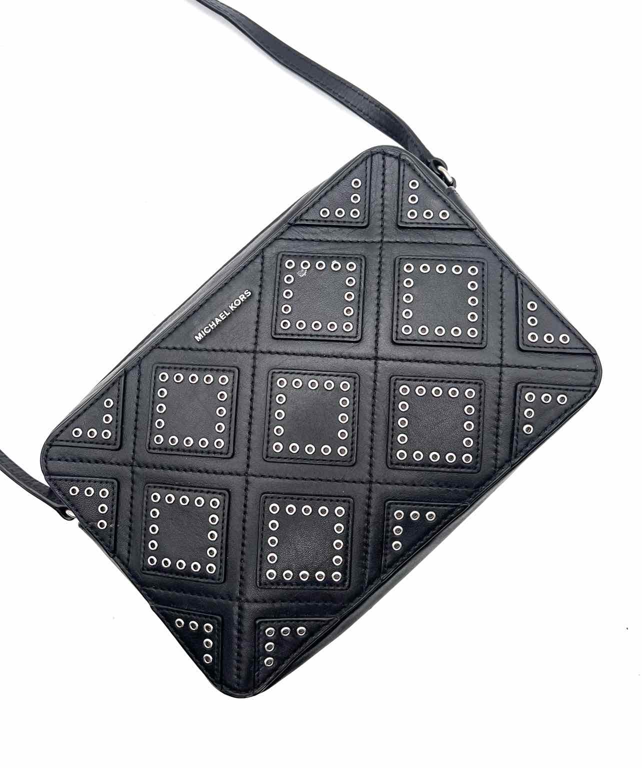 Michael Michael Kors Black/Silver Grommet Leather Designer Crossbody Purse