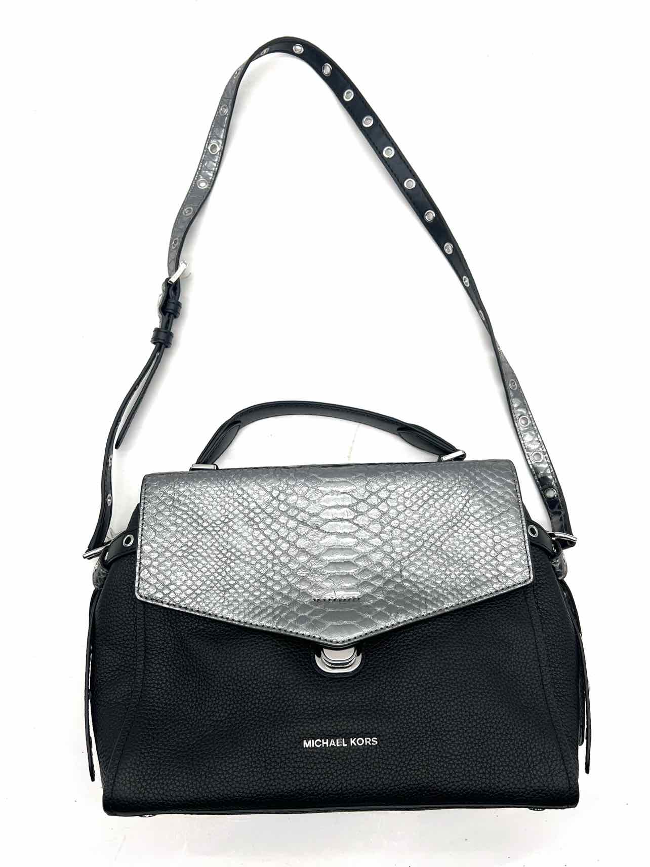 Michael Michael Kors Black/Pewter Leather Reptile Pebbled W/ DUST BAG Satchel