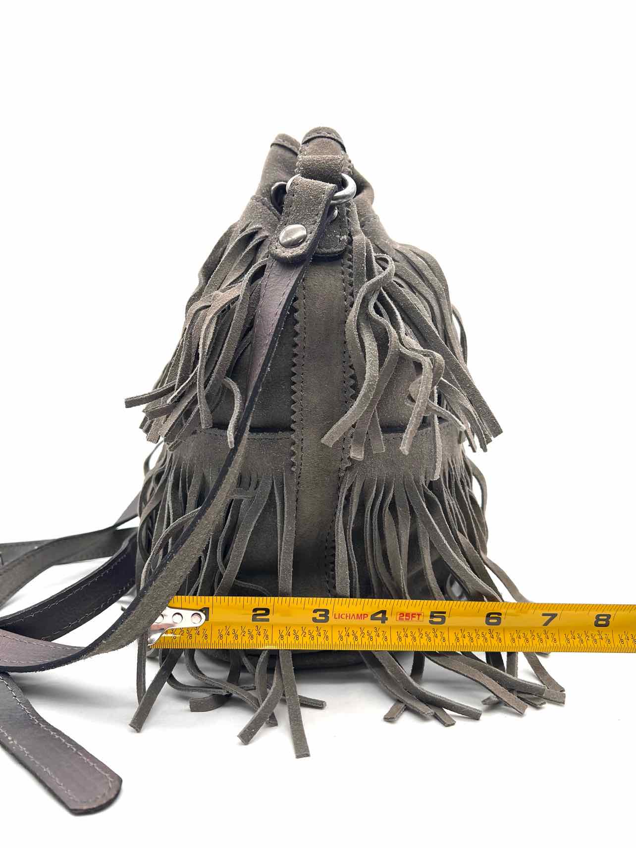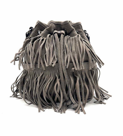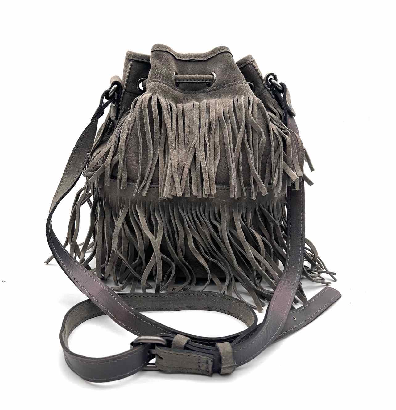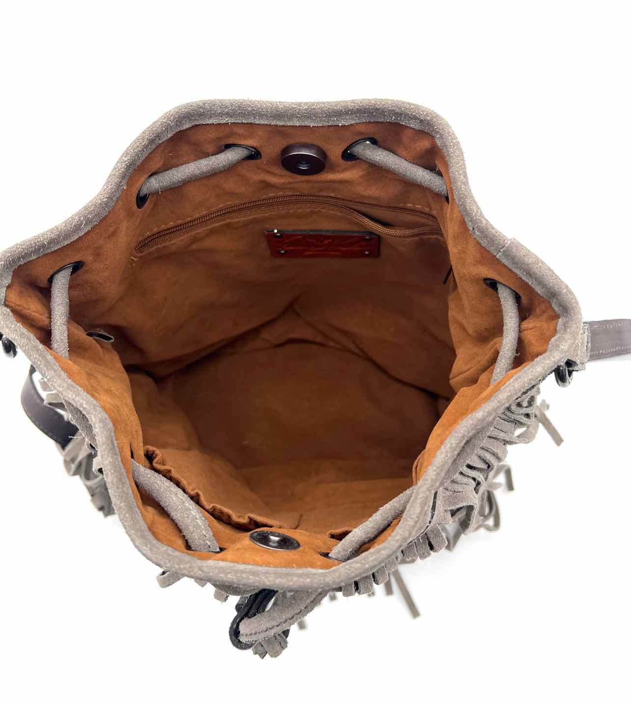 Patricia Nash Gray Bucket Fringe Suede Designer Crossbody Purse