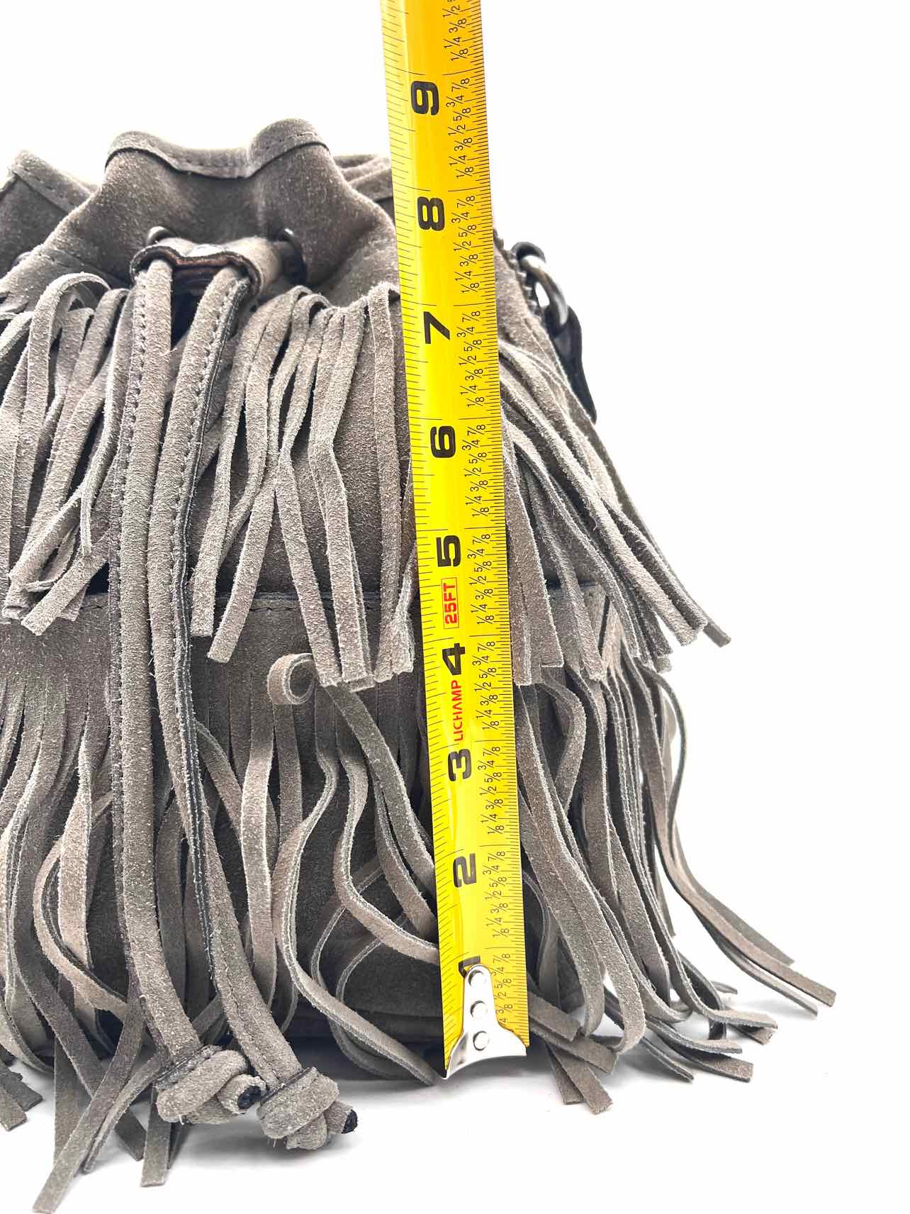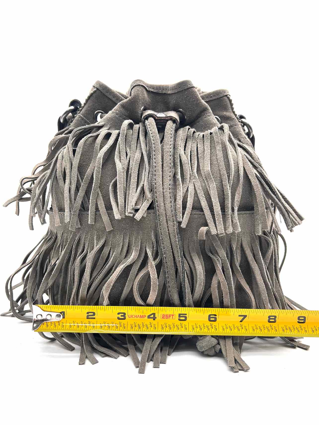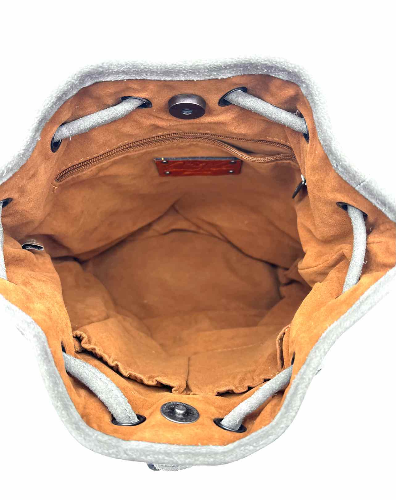 Patricia Nash Gray Bucket Fringe Suede Designer Crossbody Purse