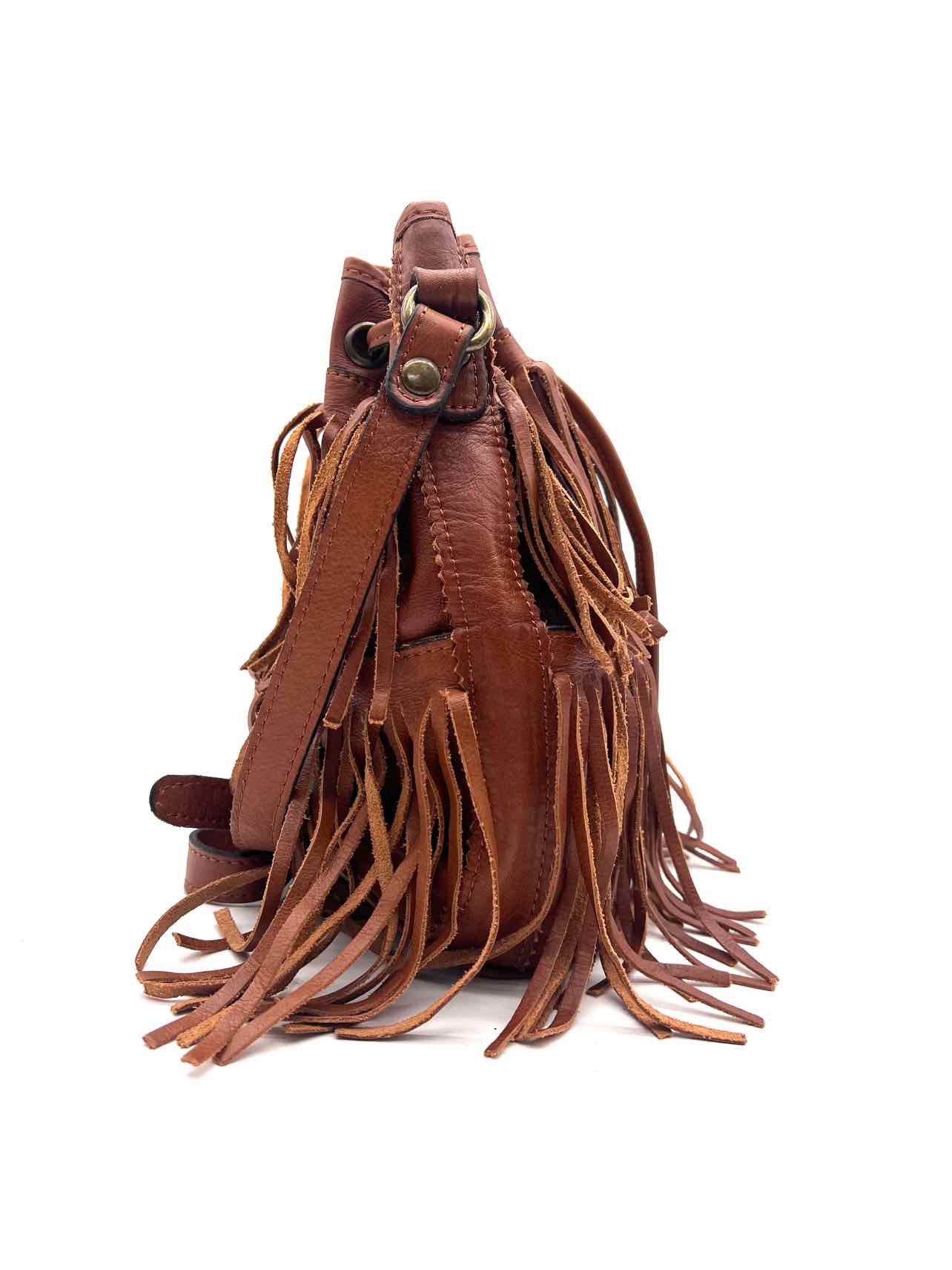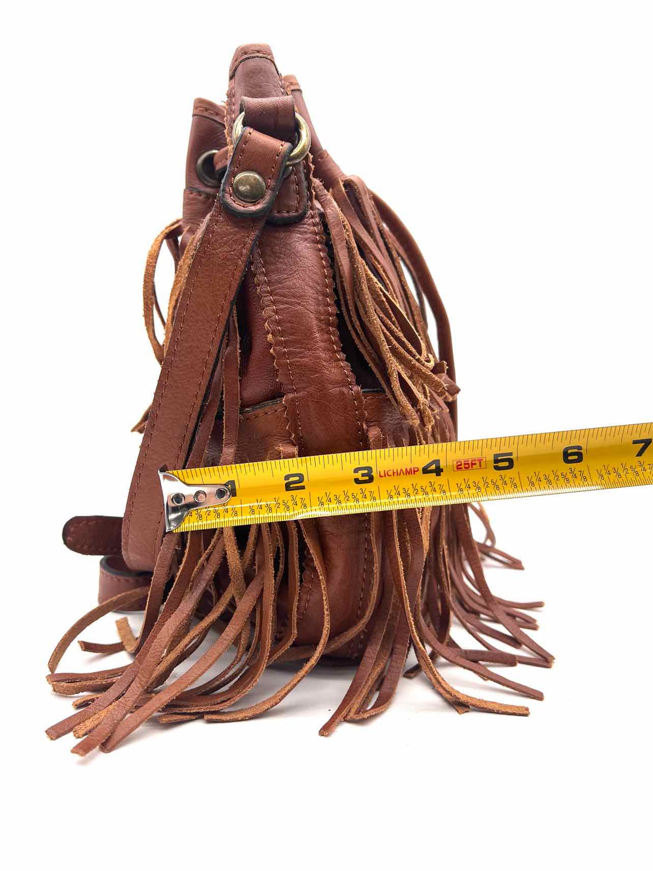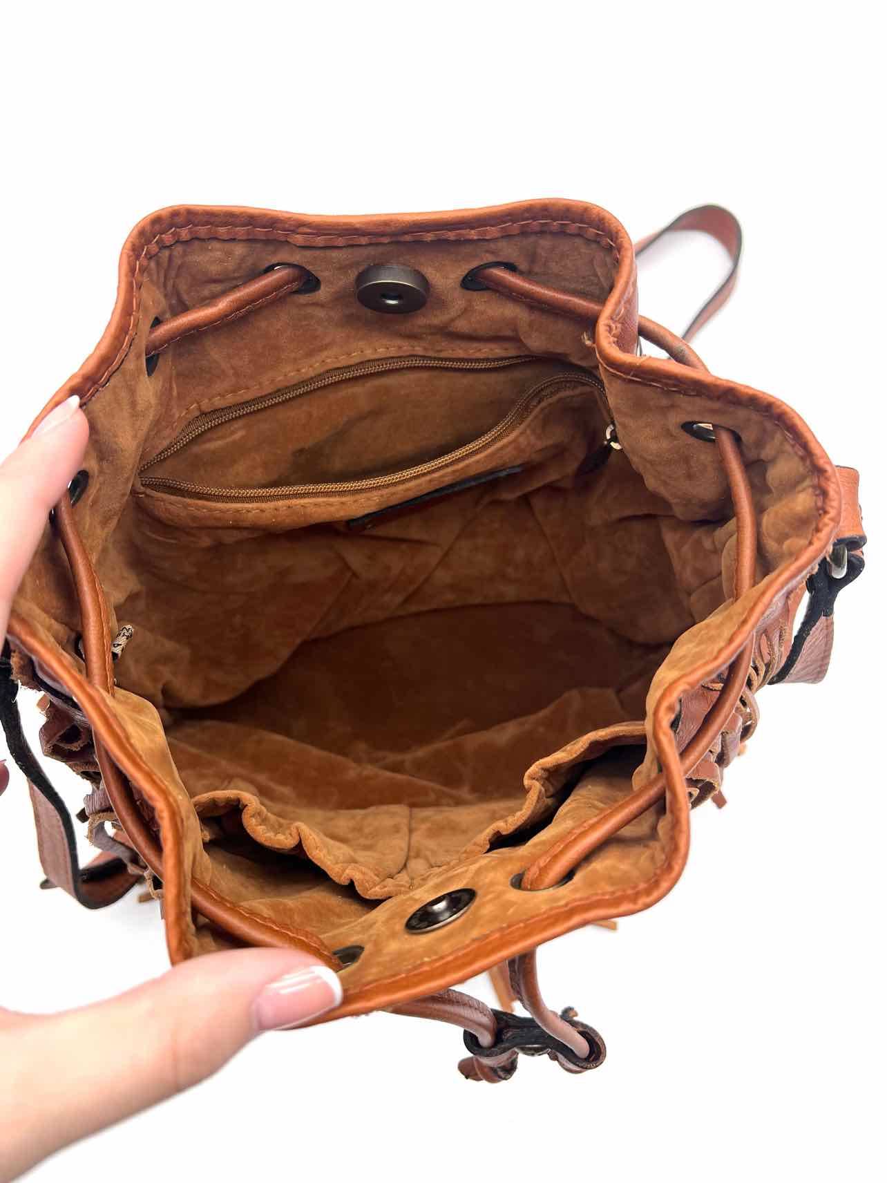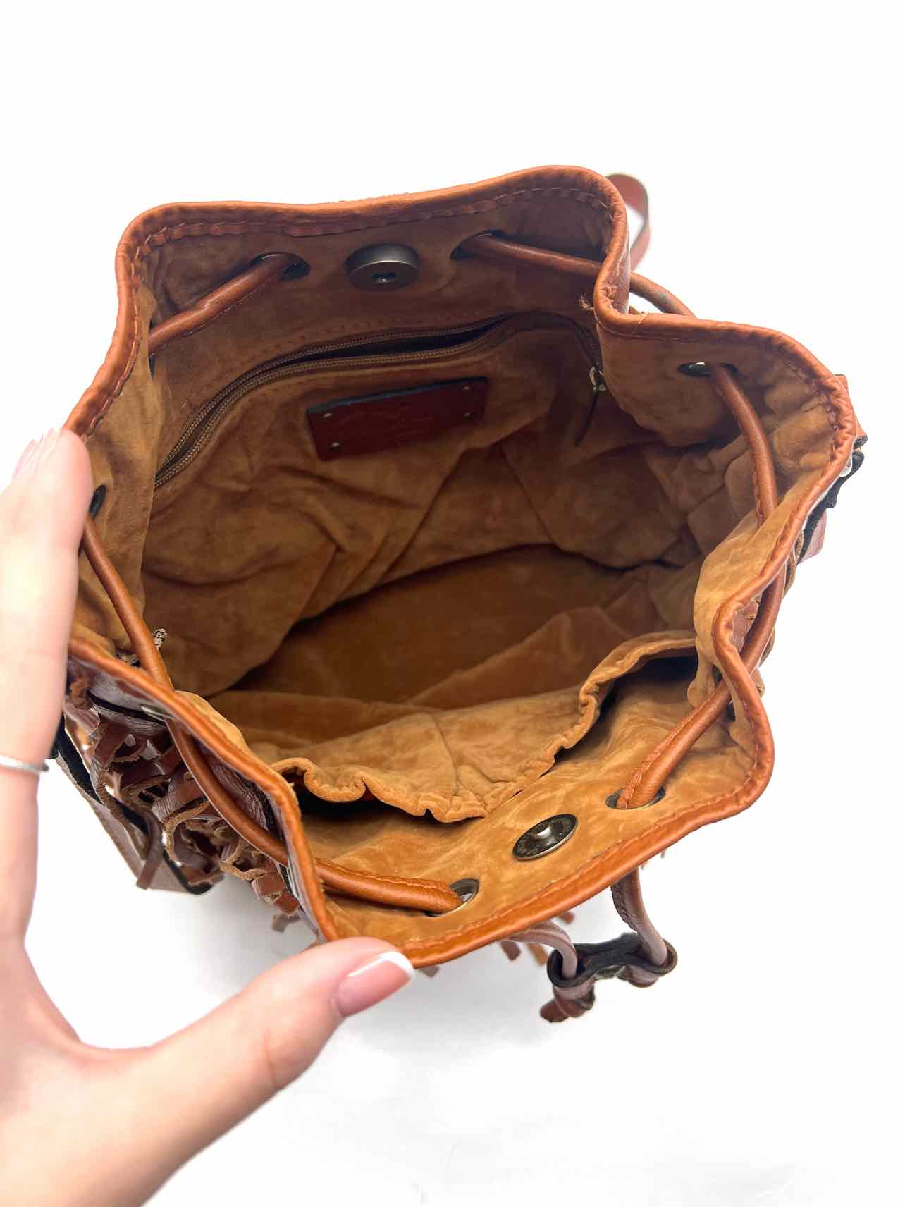 Patricia Nash Cognac Bucket Fringe Leather Designer Crossbody Purse