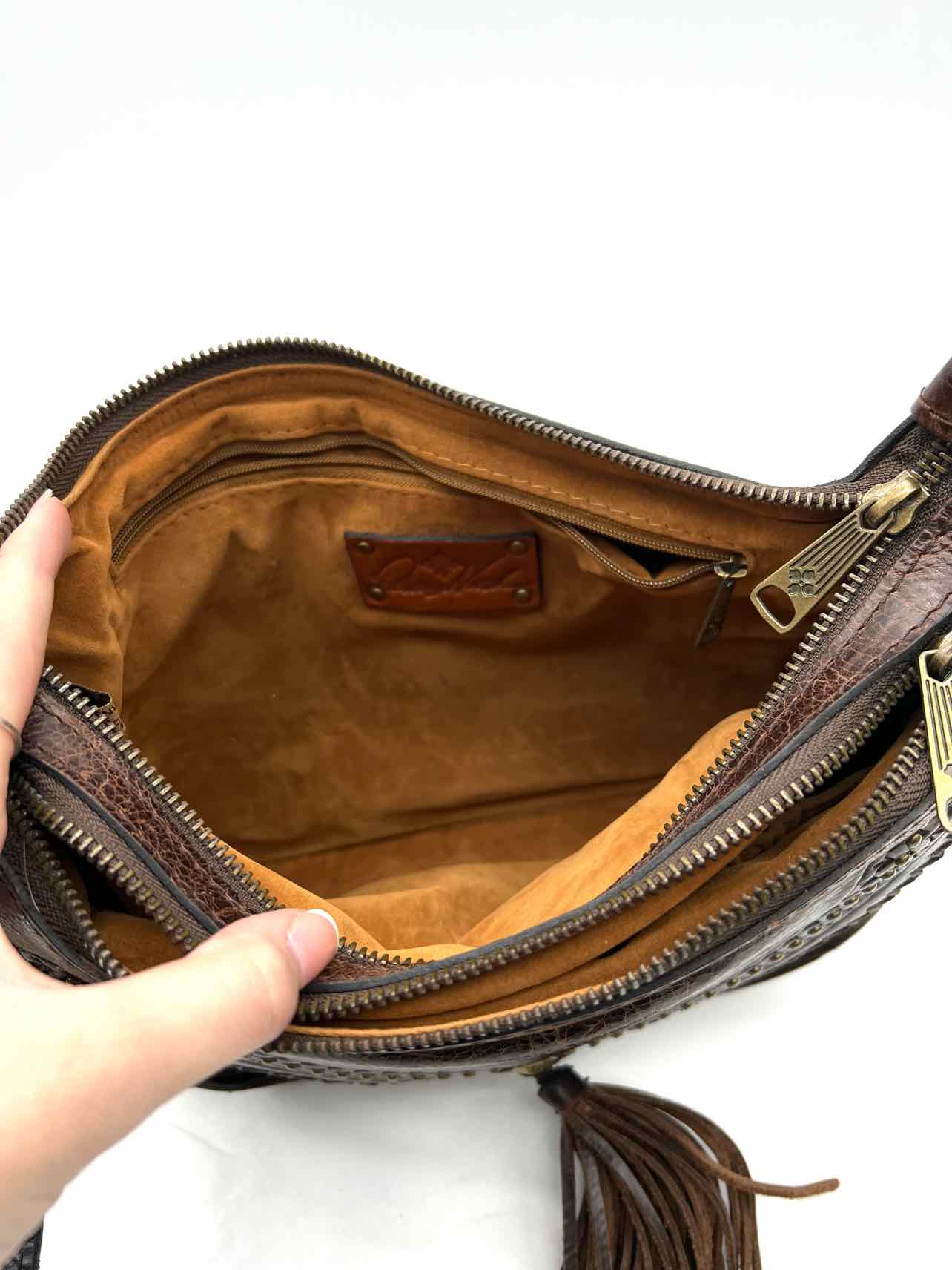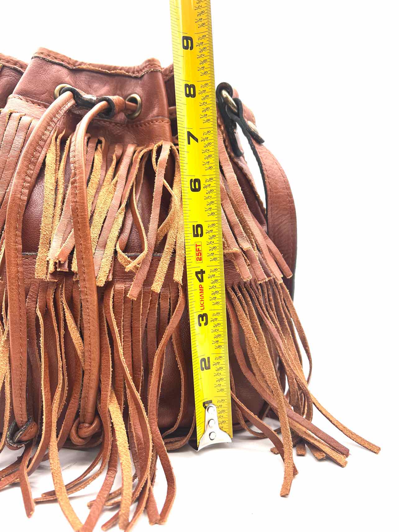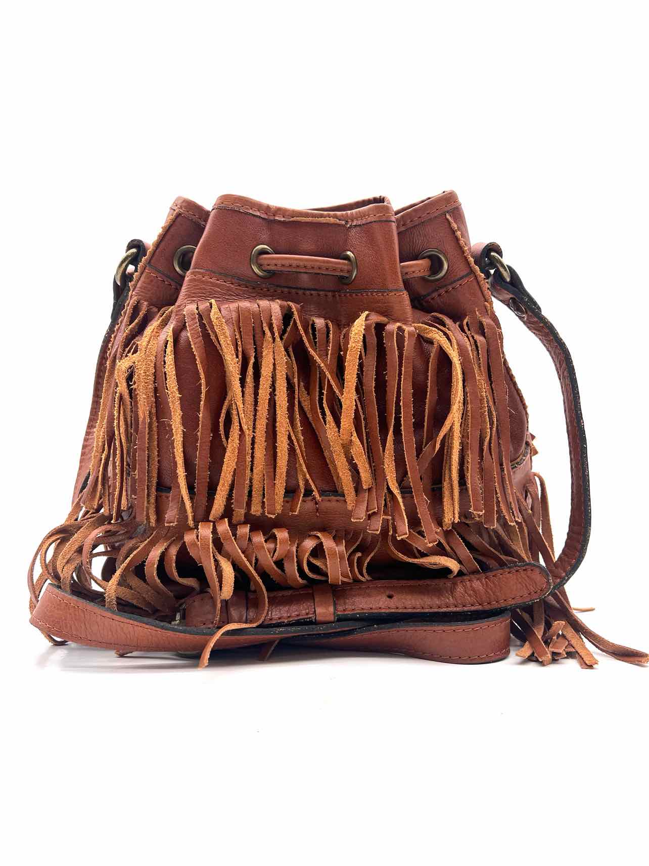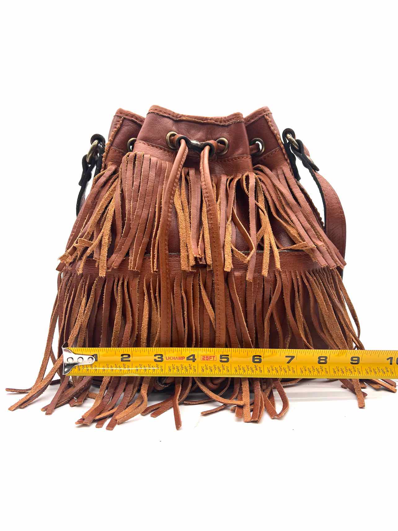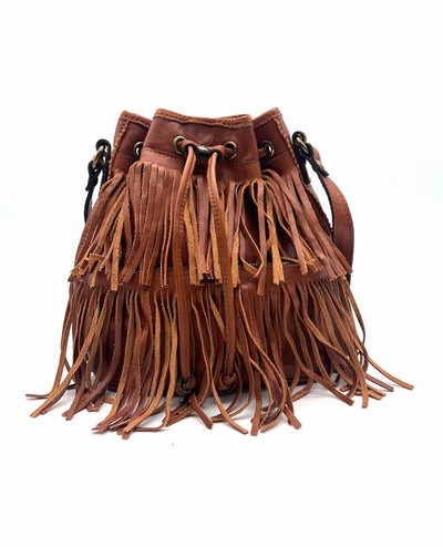 Patricia Nash Cognac Bucket Fringe Leather Designer Crossbody Purse