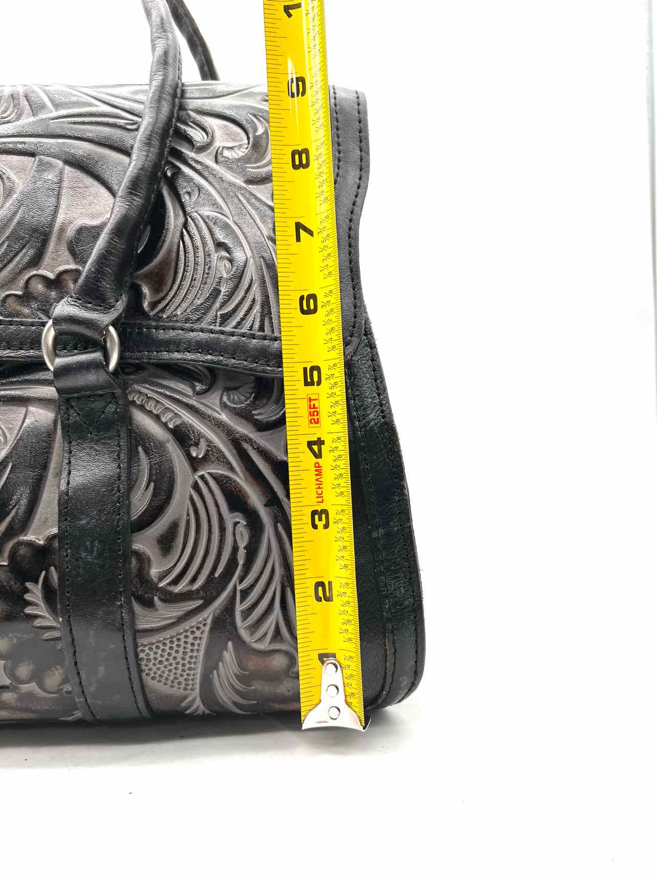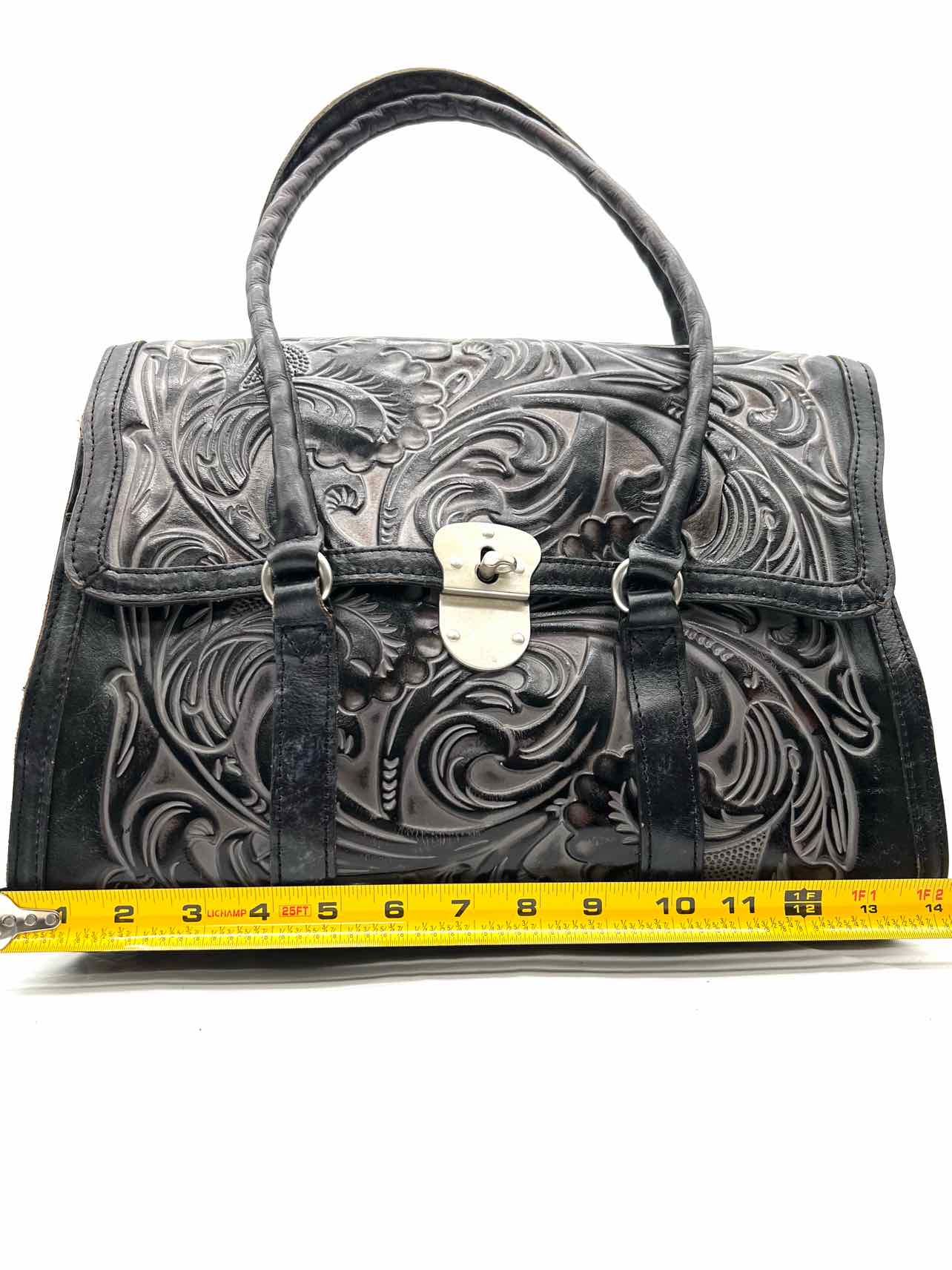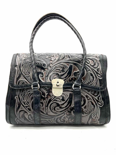 Patricia Nash Black/Gray Shoulder Bag Tooled Leather Designer Purse