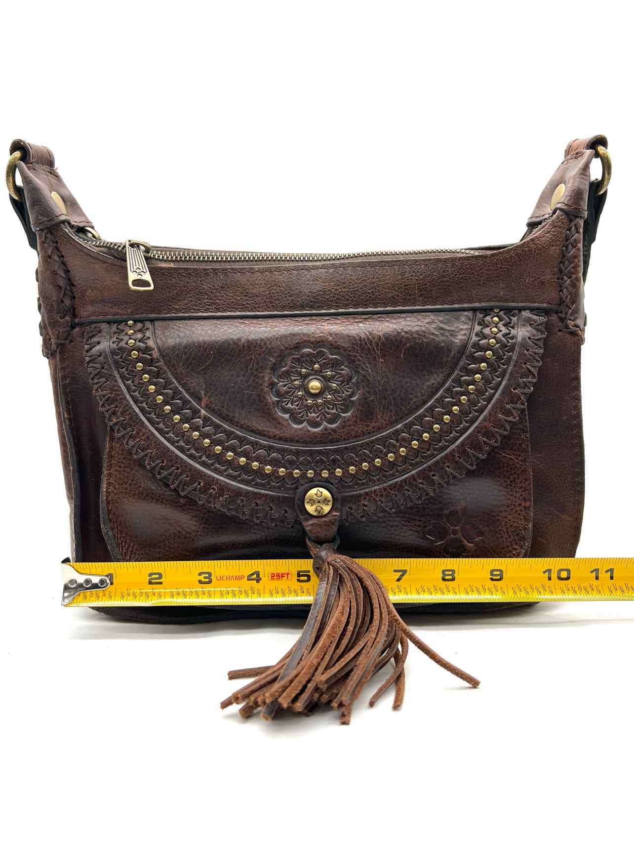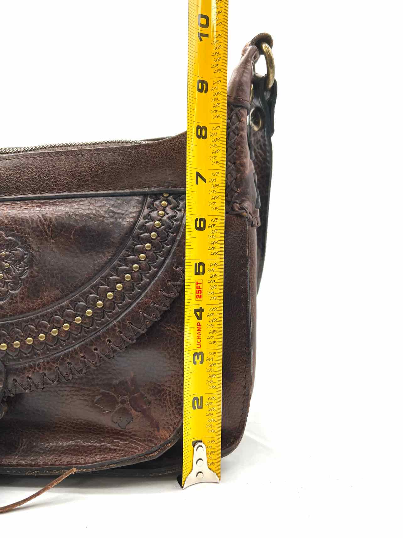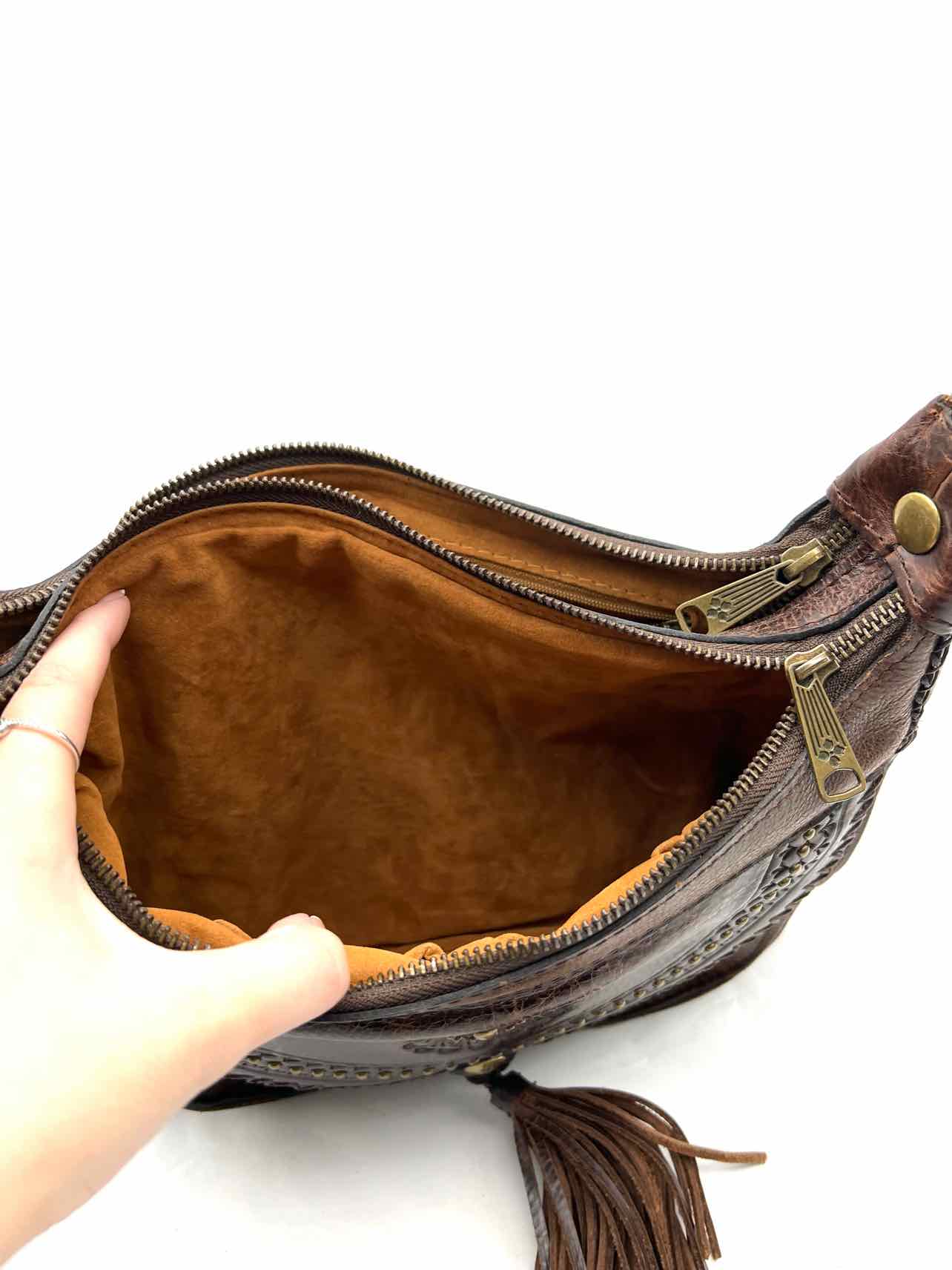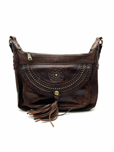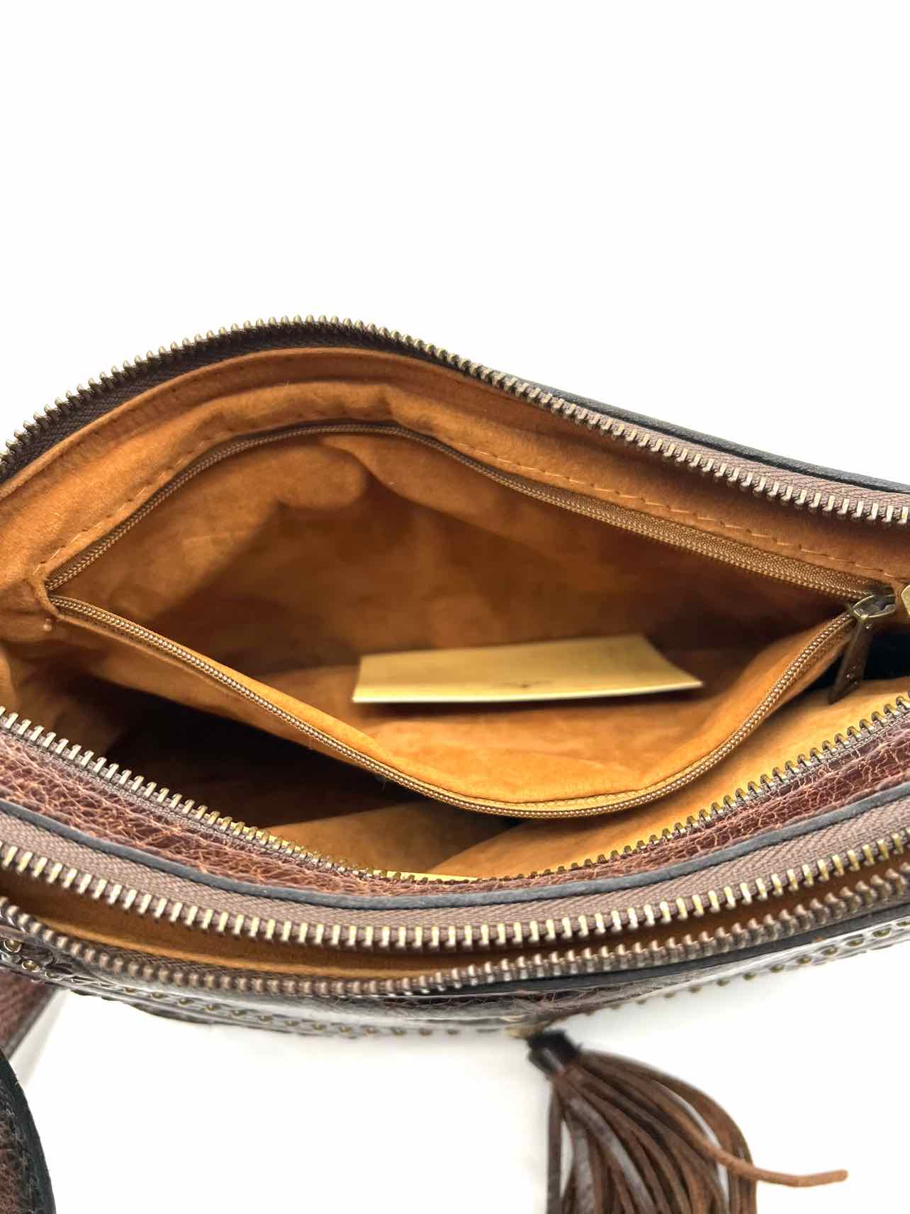 Patricia Nash Dk Brown/Gold Tooled Leather Designer Crossbody Purse