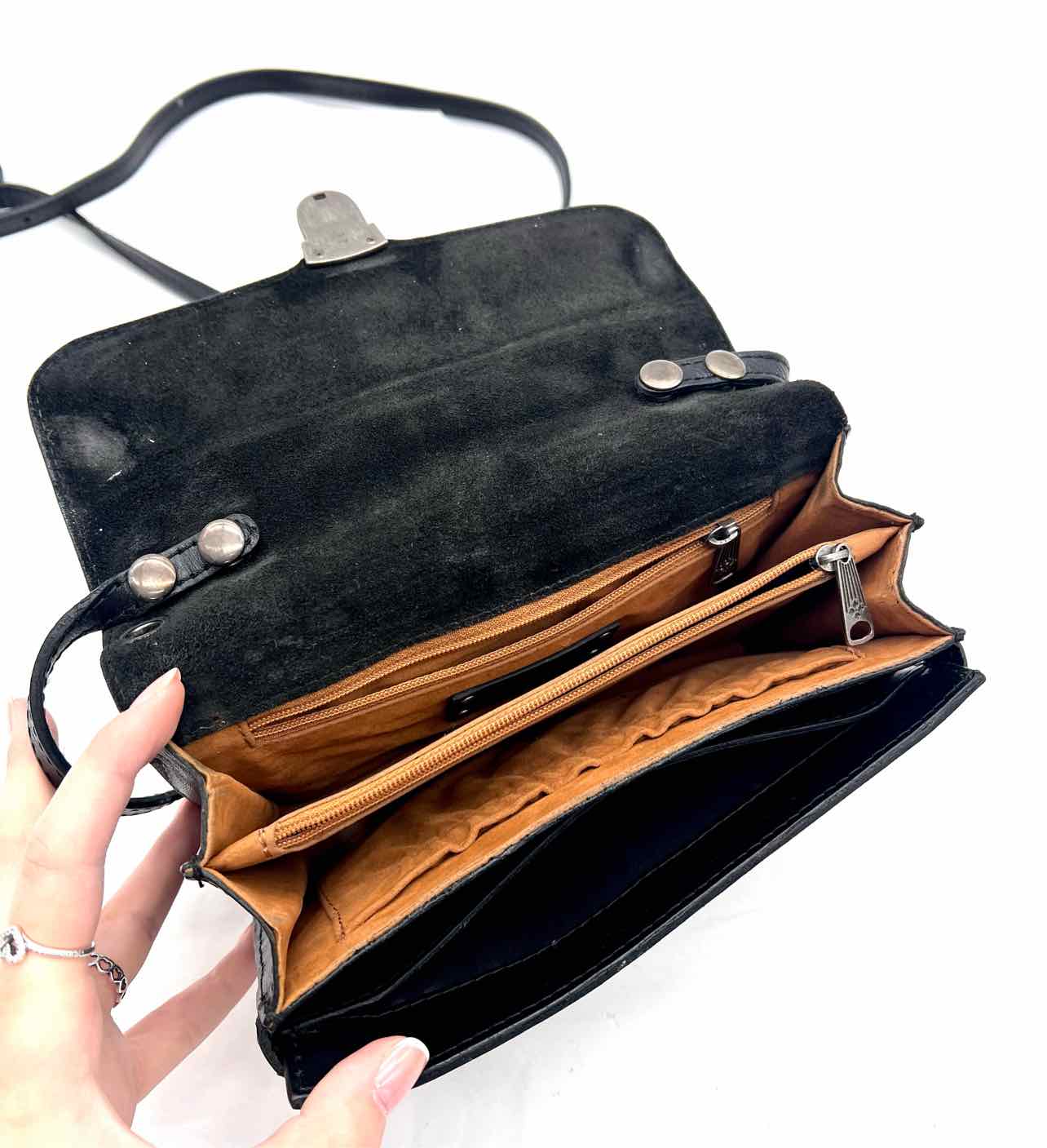 Patricia Nash Brown/Black Reptile Cowhide W/ DUST BAG Designer Crossbody Purse