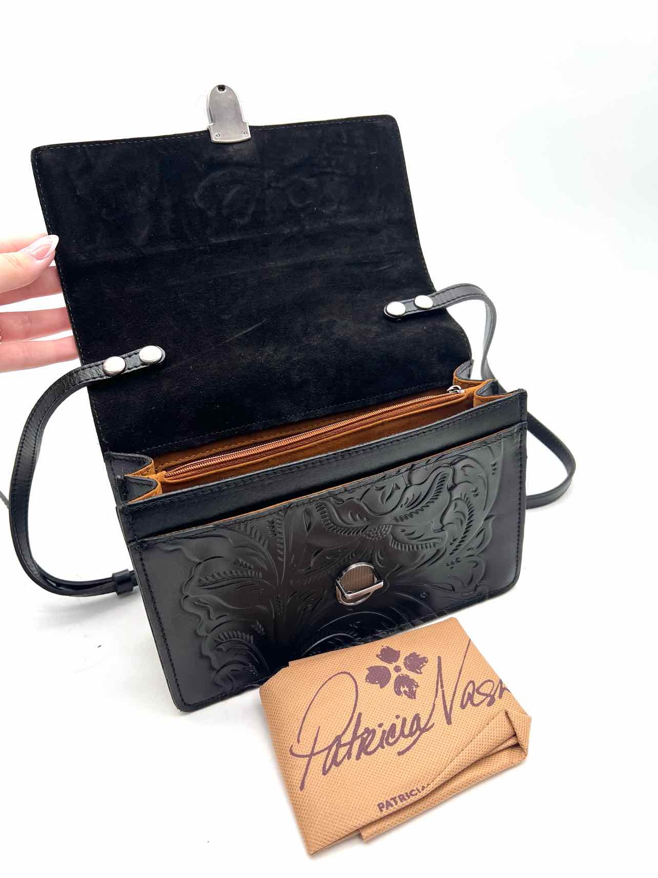 Patricia Nash Black Embossed Leather W/ DUST BAG Designer Crossbody Purse