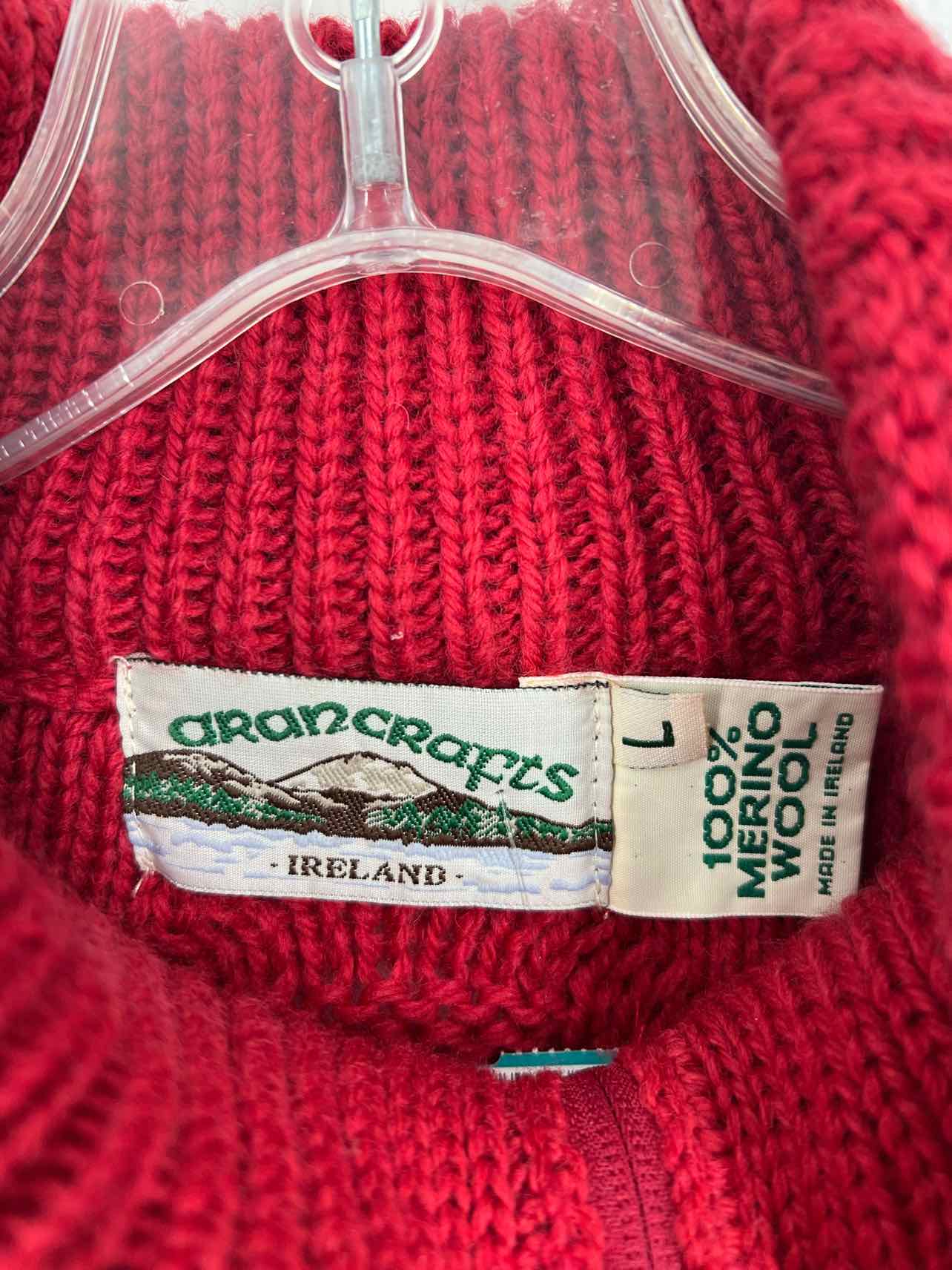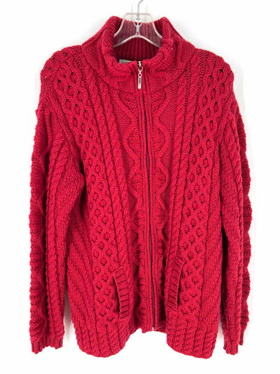 Aran Crafts Size L Red Cable Knit Merino Wool Jackets Jacket