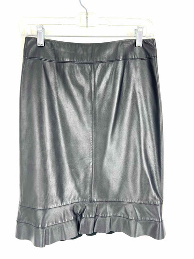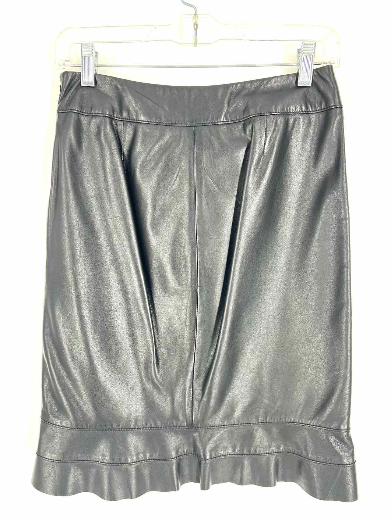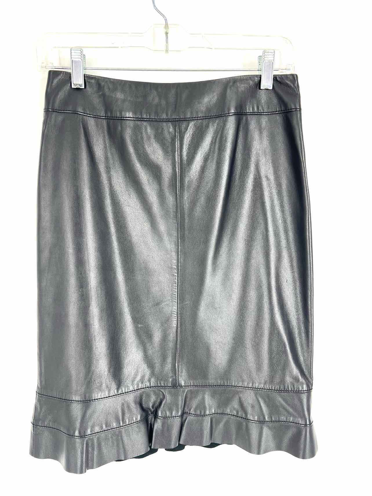 Worth Size 0 Black Ruffle Trim Leather Designer Skirt