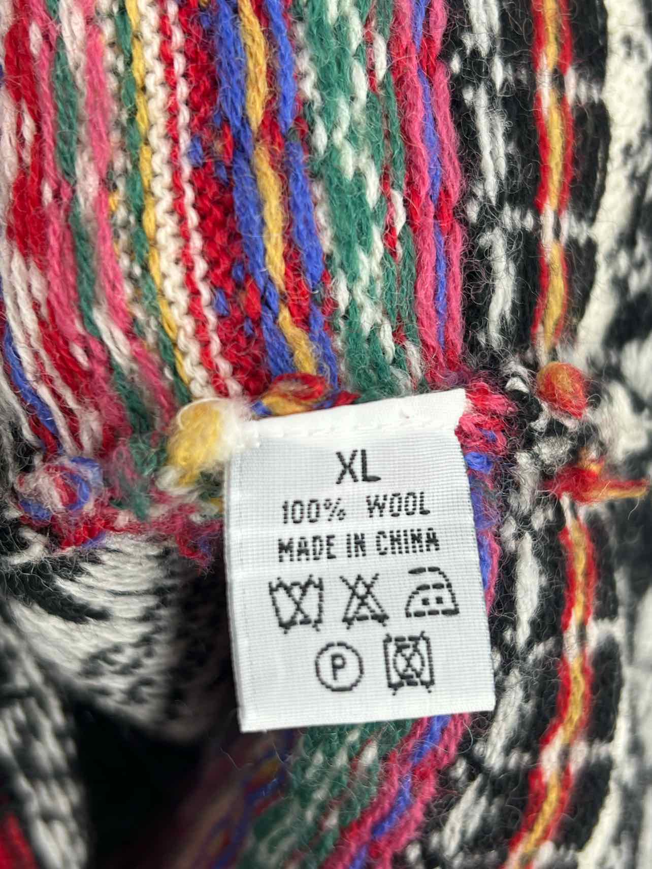 Peruvian Connection Size XL Tan/Multi-color Print Knit Vintage Cardigan Sweater