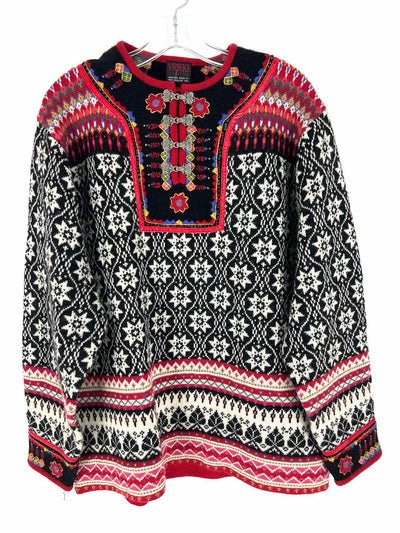 Vrikke Size XL Black/Multi Print Knit Designer Sweater