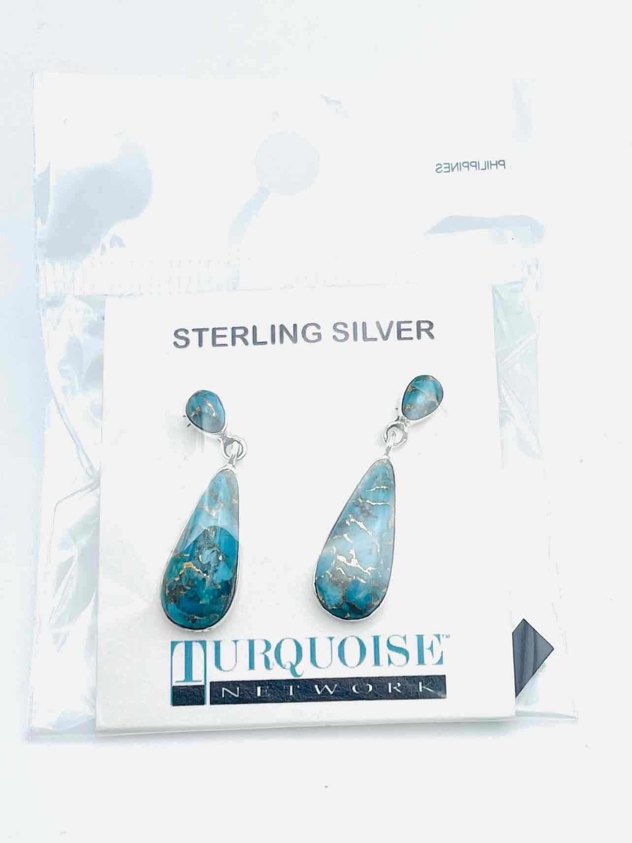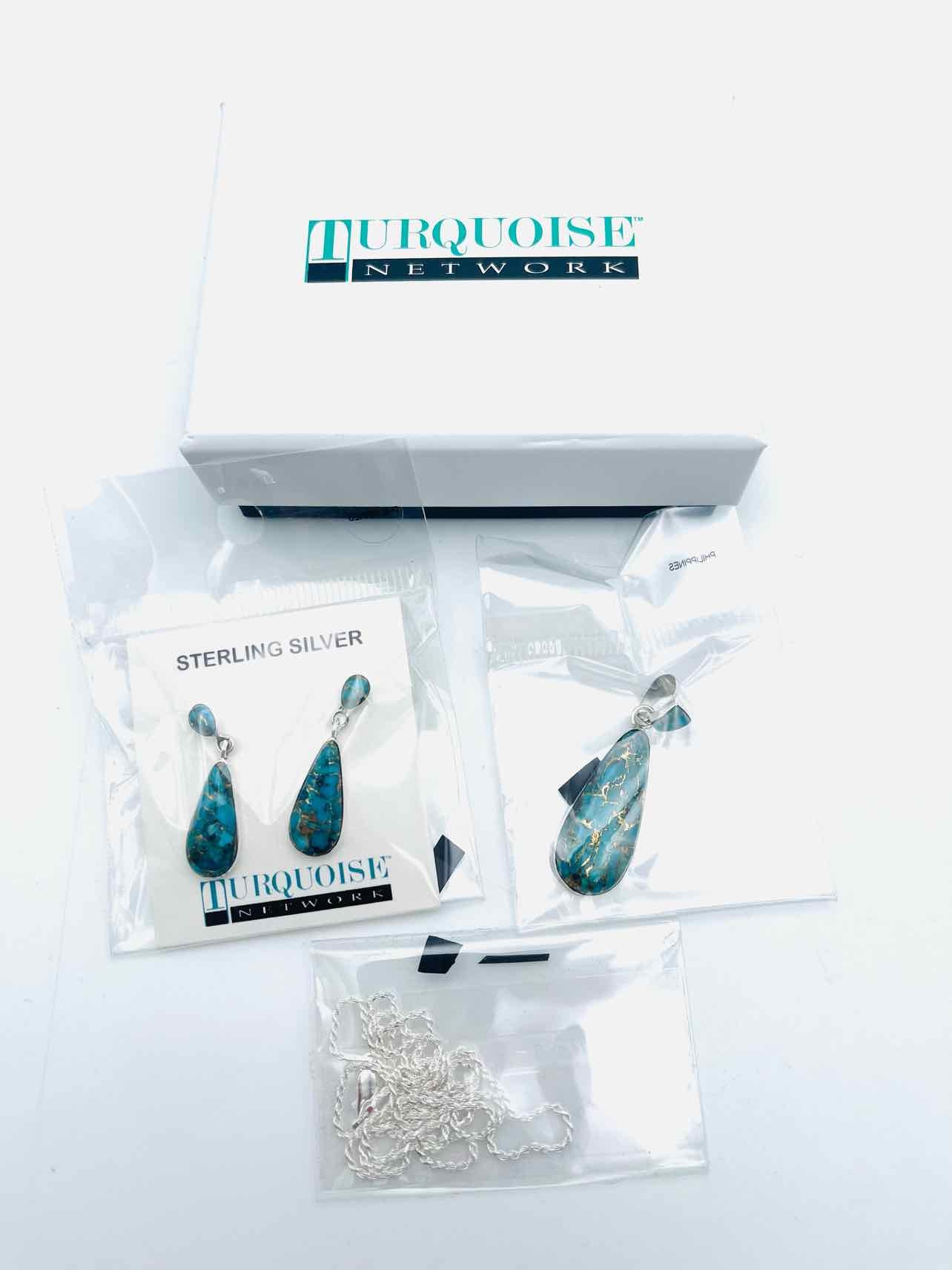 Turquoise Network Turq/Silver Pendant Teardrop Sterling Silver Necklace/ER Set
