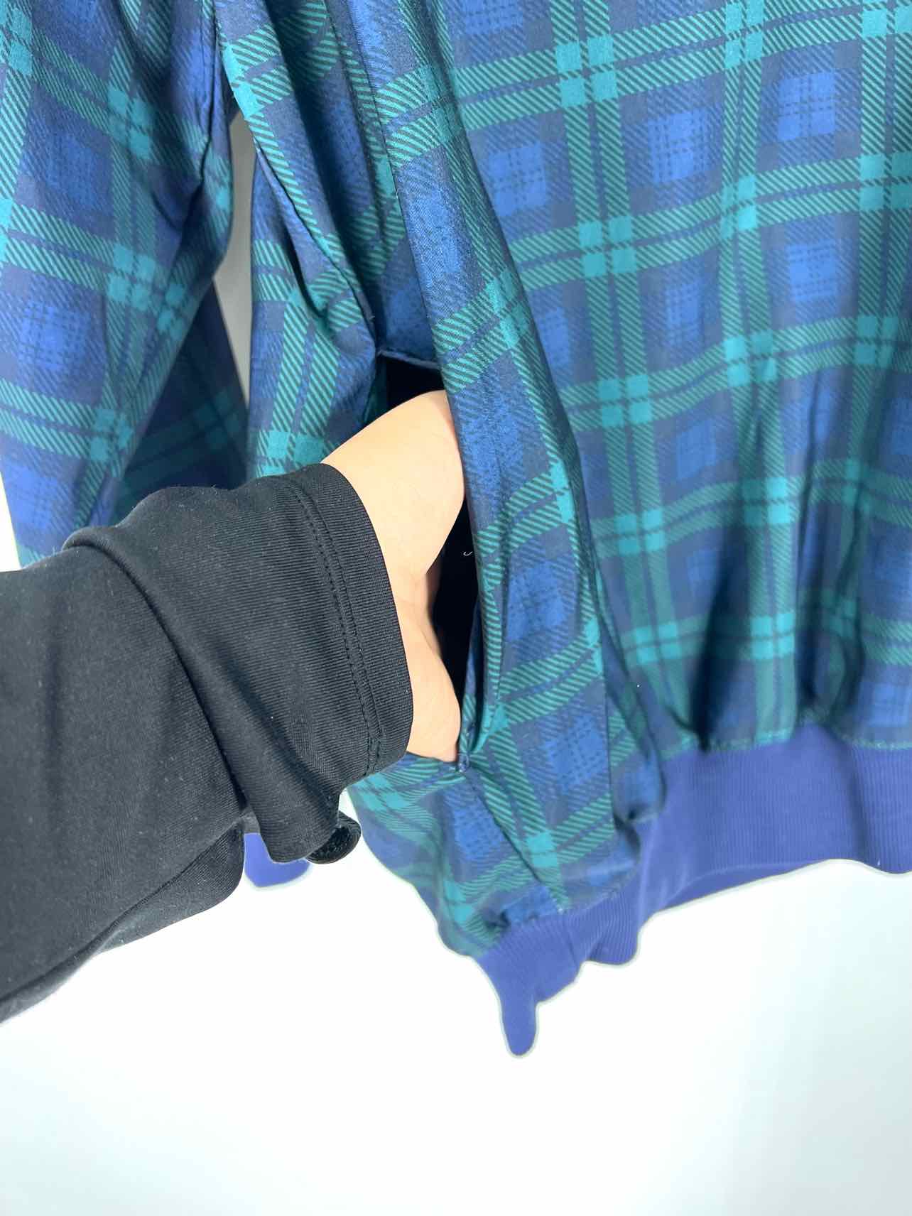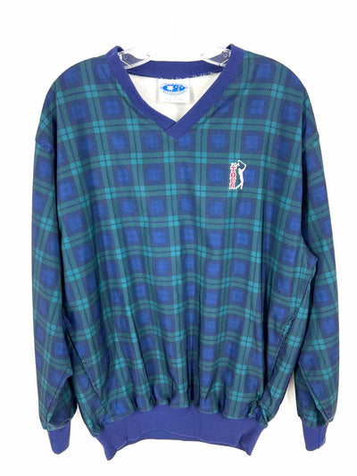 Starbus Weather Screen Size S Navy/Green Plaid Nylon Vintage Pullover- Men's