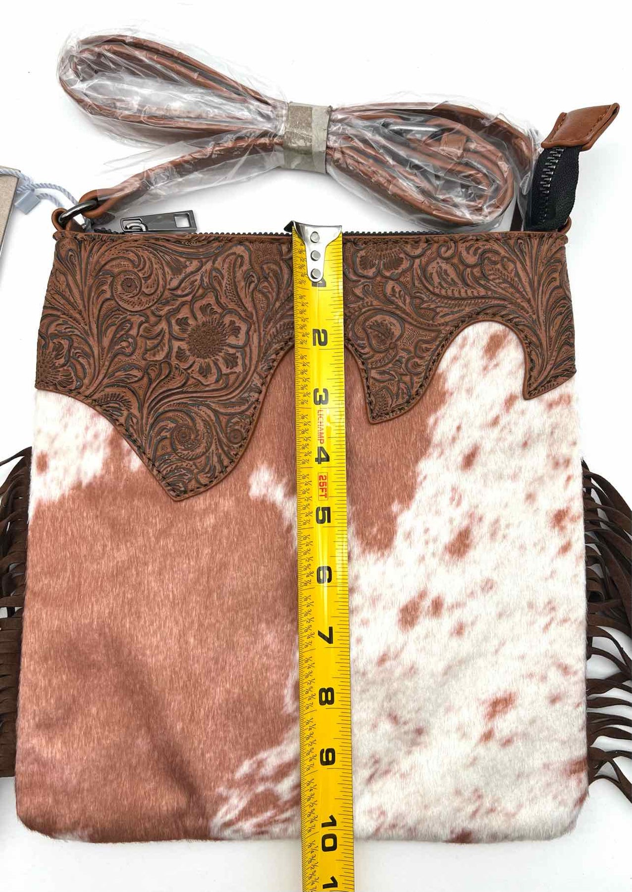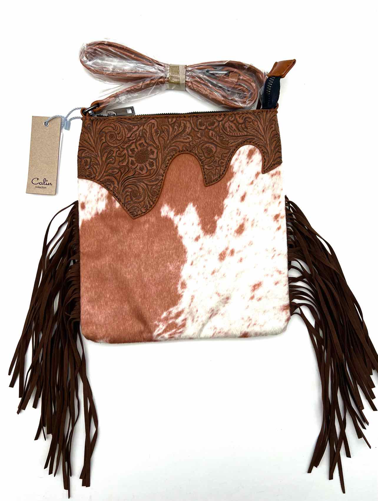 Calin Collection Brown/White Cow Print Tooled NEW Purses Crossbody Purse