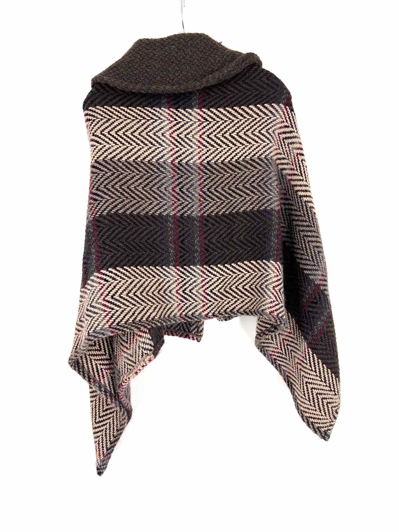 Branigan Weavers Size M/L Brown/Multi Herringbone Wool Blend Designer Poncho
