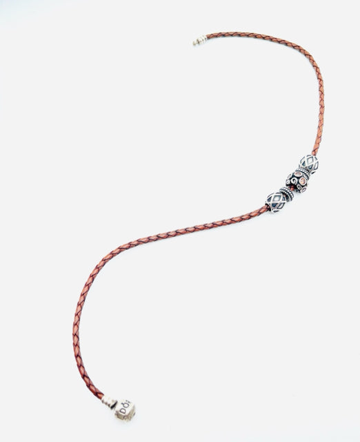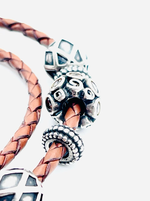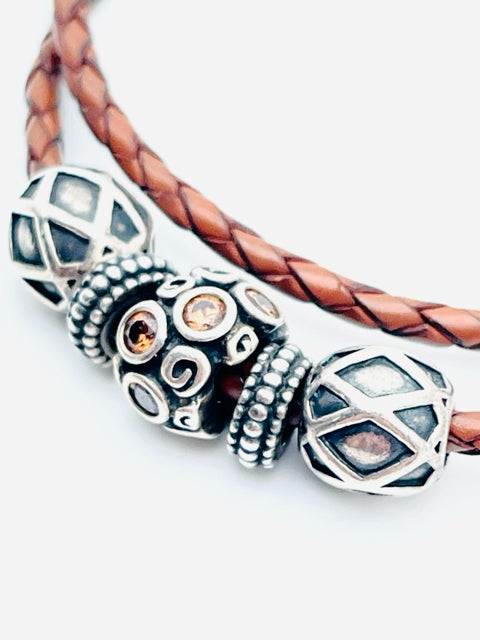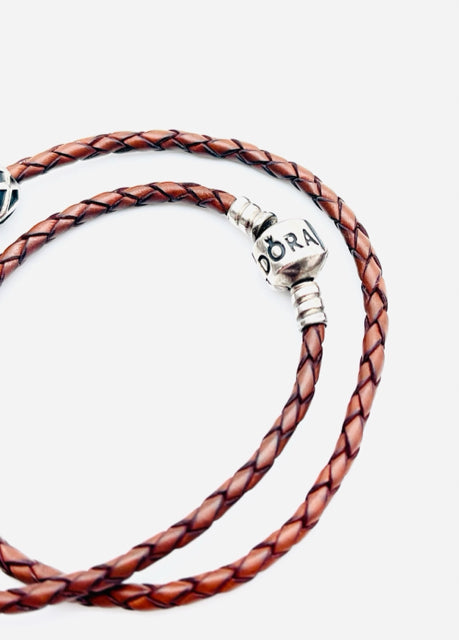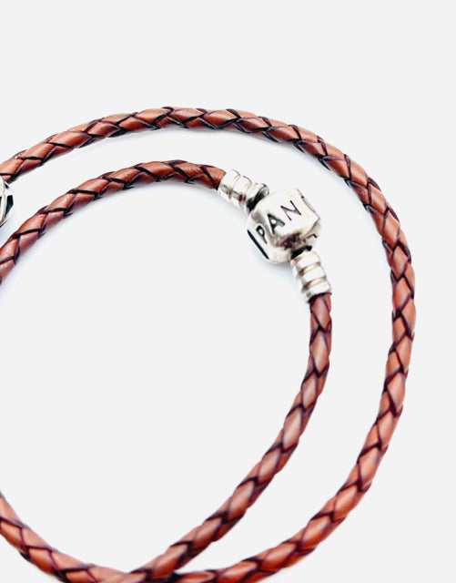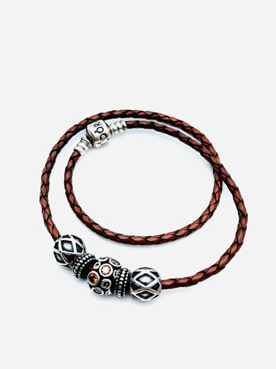 Pandora Size Wrap-Around Brown/Silver Charm Braided Sterling Silver Bracelet