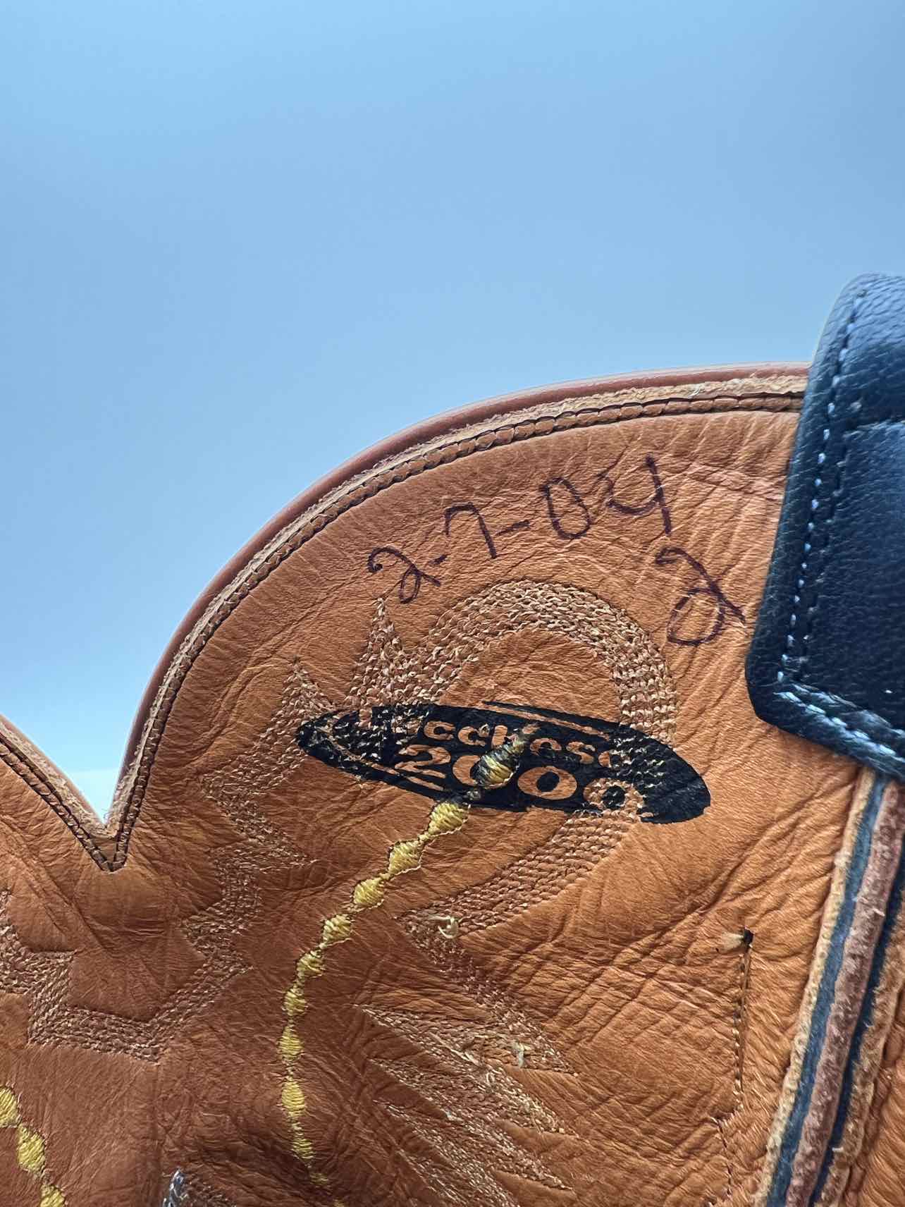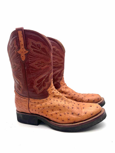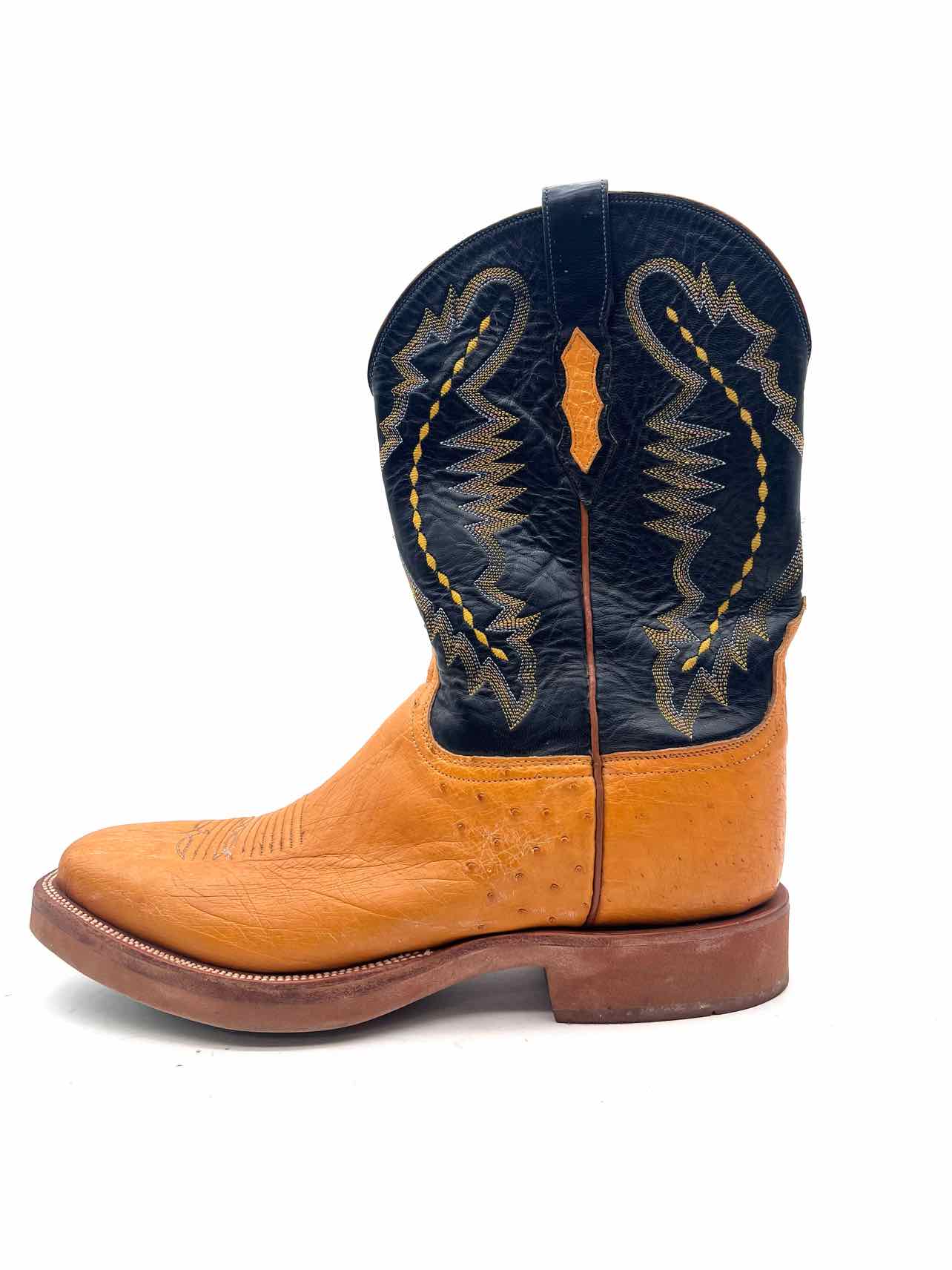 Lucchese 2000 Size 11.5 Tan/Navy Ostrich Blocked AS IS Men's Boots- Men's