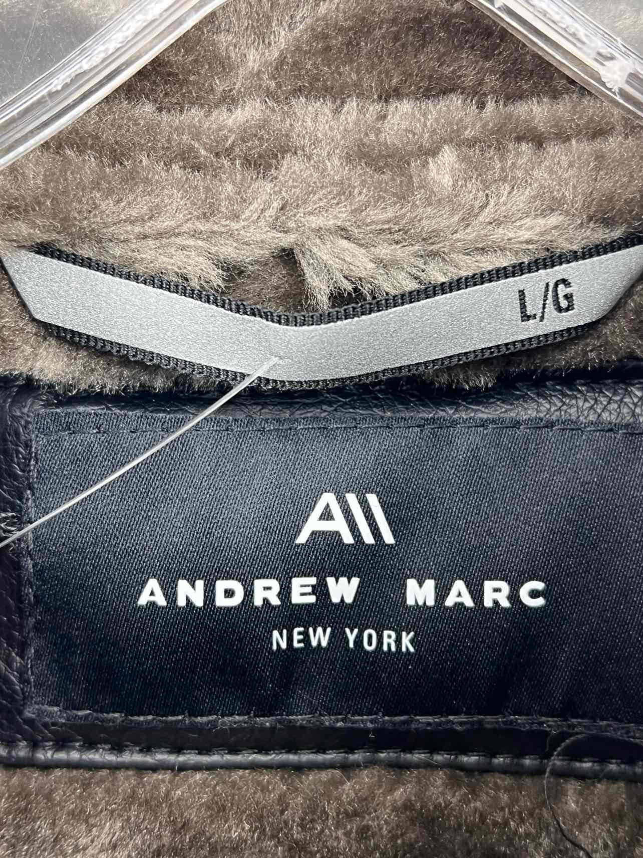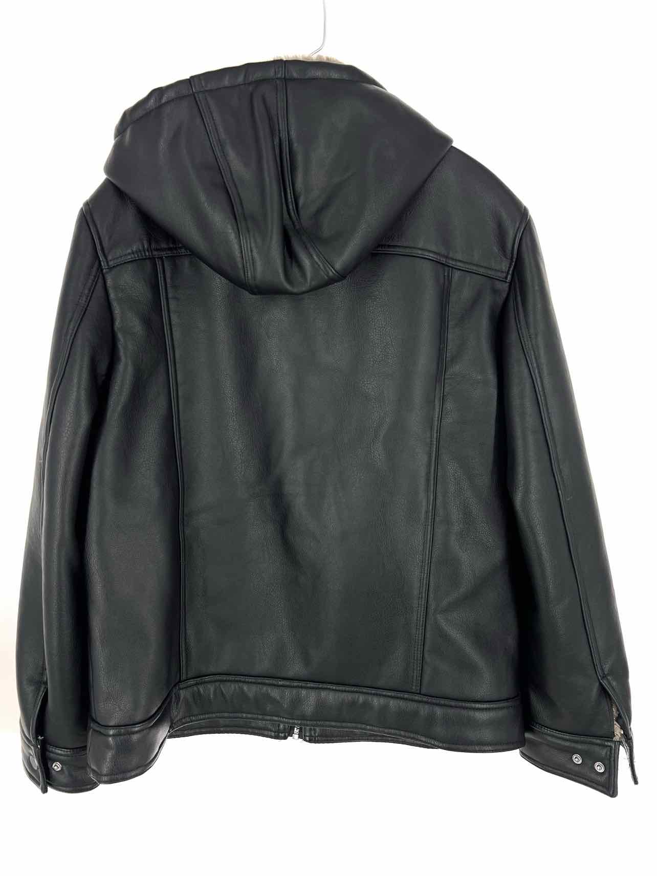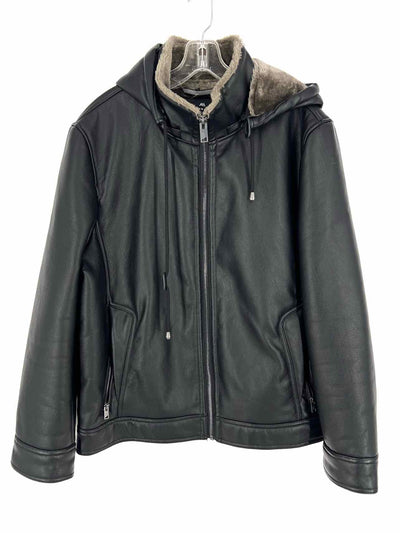 Andrew Marc Size XL Black/Gray Hooded Faux Leather Men's Jacket- Men's