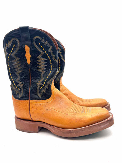 Larry Mahan Size 12 Black/Brown Ostrich Stitched Men's Boots- Men's